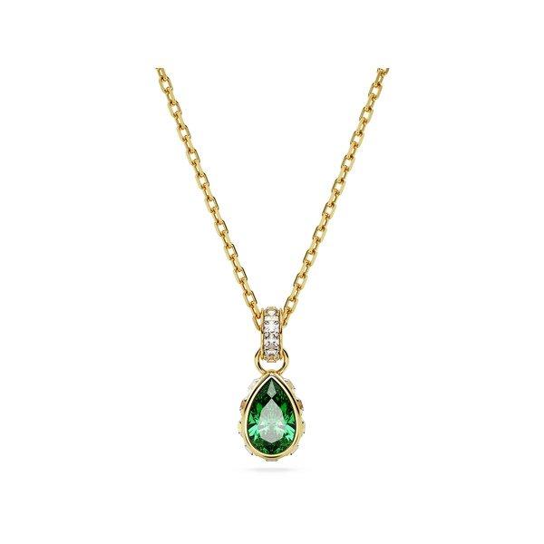 Il luccicante ciondolo della famiglia Stilla è piccolo e di potente bellezza allo stesso tempo. Come una goccia di luce, il ciondolo brilla al centro con un elemento verde, che si trova su una montatura con uno strato in lega d'oro. Intorno, cristalli quadrati e trasparenti sono stati posizionati sui bordi e sulla stanghetta. Questo pezzo pende da una catena con strato in lega d'oro e un elemento rotondo all'estremità. Dispone inoltre di una prolunga da 5 cm. Puoi indossare il ciondolo con la collana ogni giorno e renderlo una parte distintiva del tuo look.