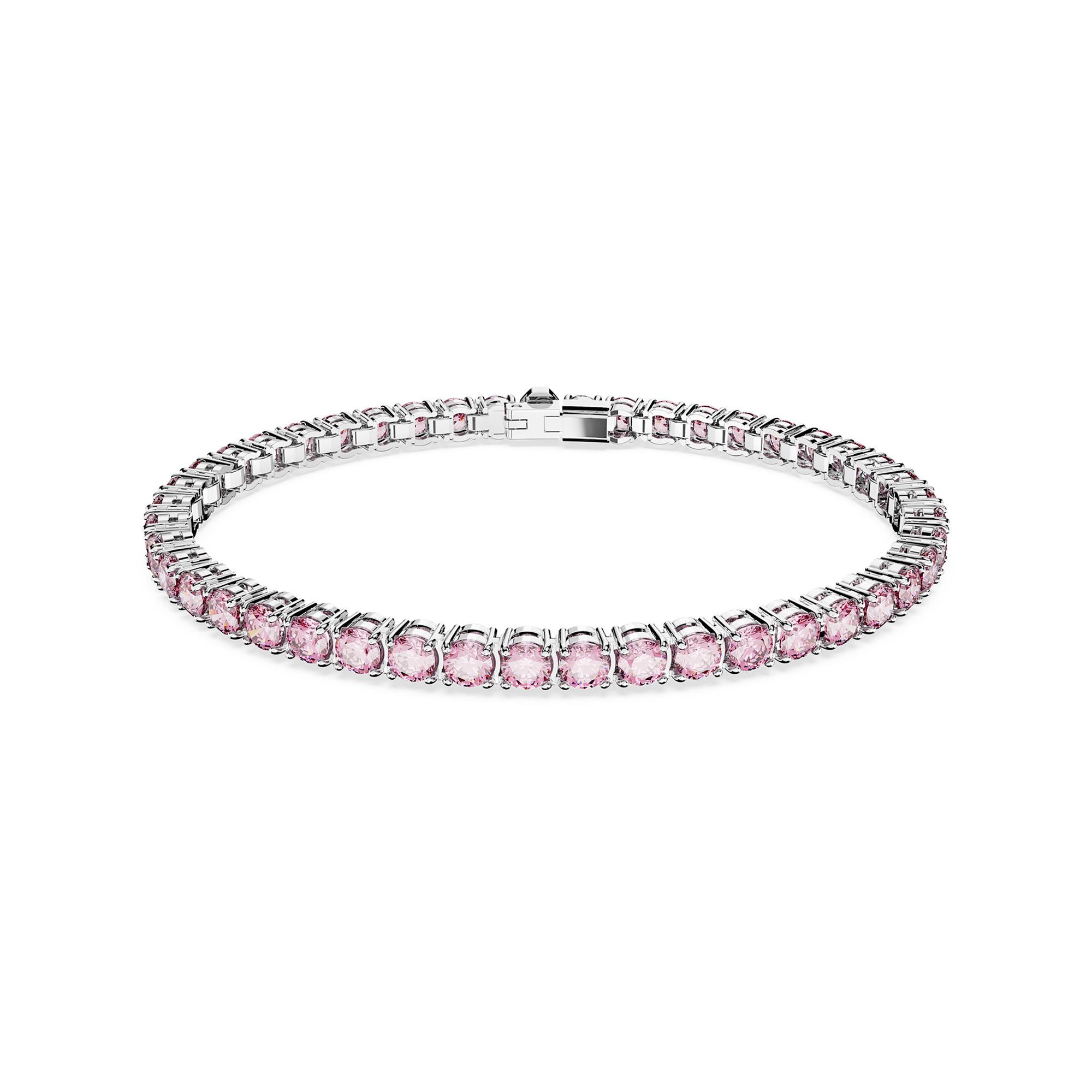 Goditi la brillantezza dei colori intensi con questo braccialetto della famiglia Matrix Tennis. Oltre alla forma perfetta e fluida del design, il pezzo propone anche una serie di elementi rotondi rosa-viola che brillano sulla montatura rodiata.