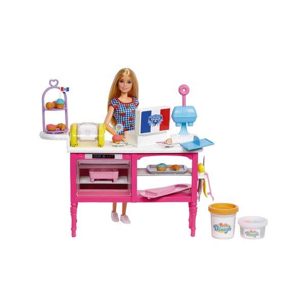 I bambini possono creare storie di pasticceria ispirate a famose scene di caffè con la bambola Barbie "Malibu" Roberts e il playset ispirato alla serie "It Takes Two". Con pasta in tre diversi colori, pirottini e attrezzature da cucina, è facile creare e servire deliziosi pasticcini come croissant, cupcake e ciambelle. I giovani pasticcieri e pasticceri possono decorare le loro prelibatezze e disporle nell'espositore, quindi impacchettarle e rievocare scene o inventare nuove avventure. L'impasto non è commestibile. La bambola non può stare in piedi da sola. Con riserva di deviazioni di colore e design.