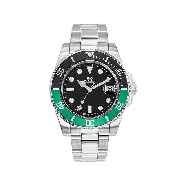 Questo orologio analogico firmato Richelieu della serie Sport è un moderno orologio con cinturino e cassa in acciaio inossidabile e fibbia pieghevole. La copertura in vetro zaffiro ha una durezza impressionante ed è estremamente resistente ai graffi. L'orologio al quarzo resistente con datario è impermeabile fino a 50 m: un accessorio affidabile e di carattere per le persone attente allo stile con una vita quotidiana attiva.