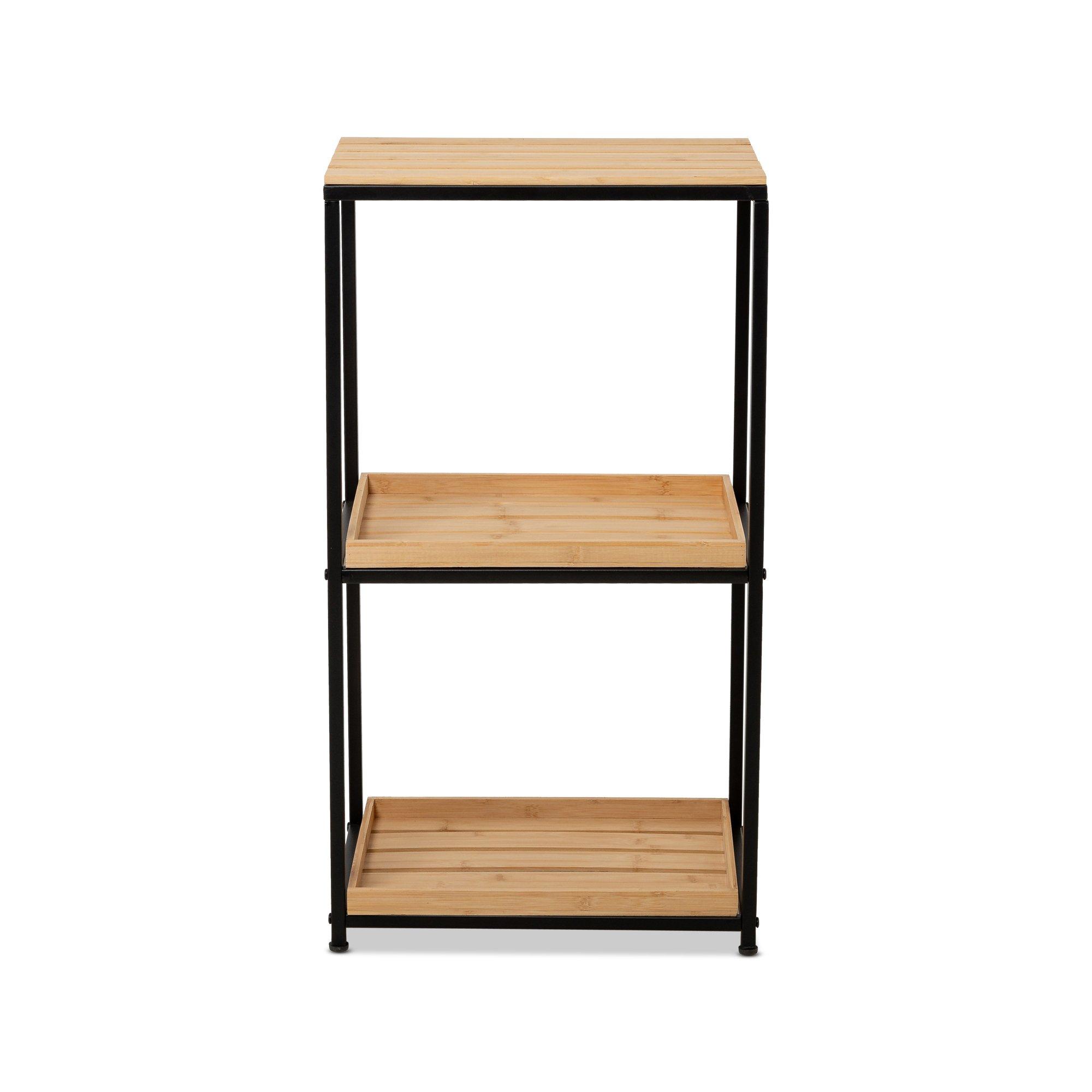 Lo scaffale di Manor combina il moderno look industriale con il caldo legno di bambù. I ripiani possono essere facilmente rimossi e fungono da vassoio per spostare il contenuto da A a B senza fatica.