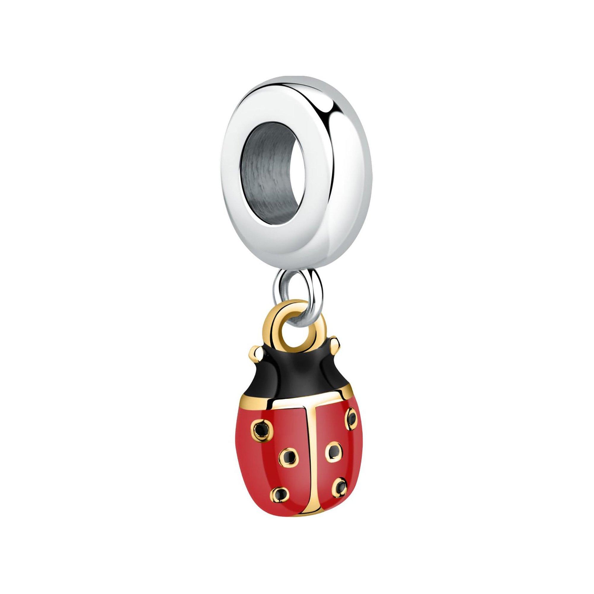 "Il ciondolo da donna della collezione ""Drops"" firmata Morellato è realizzato in acciaio inossidabile dorato e presenta un simbolo della coccinella con smalto rosso/nero. È compatibile con tutti i bracciali Morellato e offre una combinazione di stile e funzionalità. "