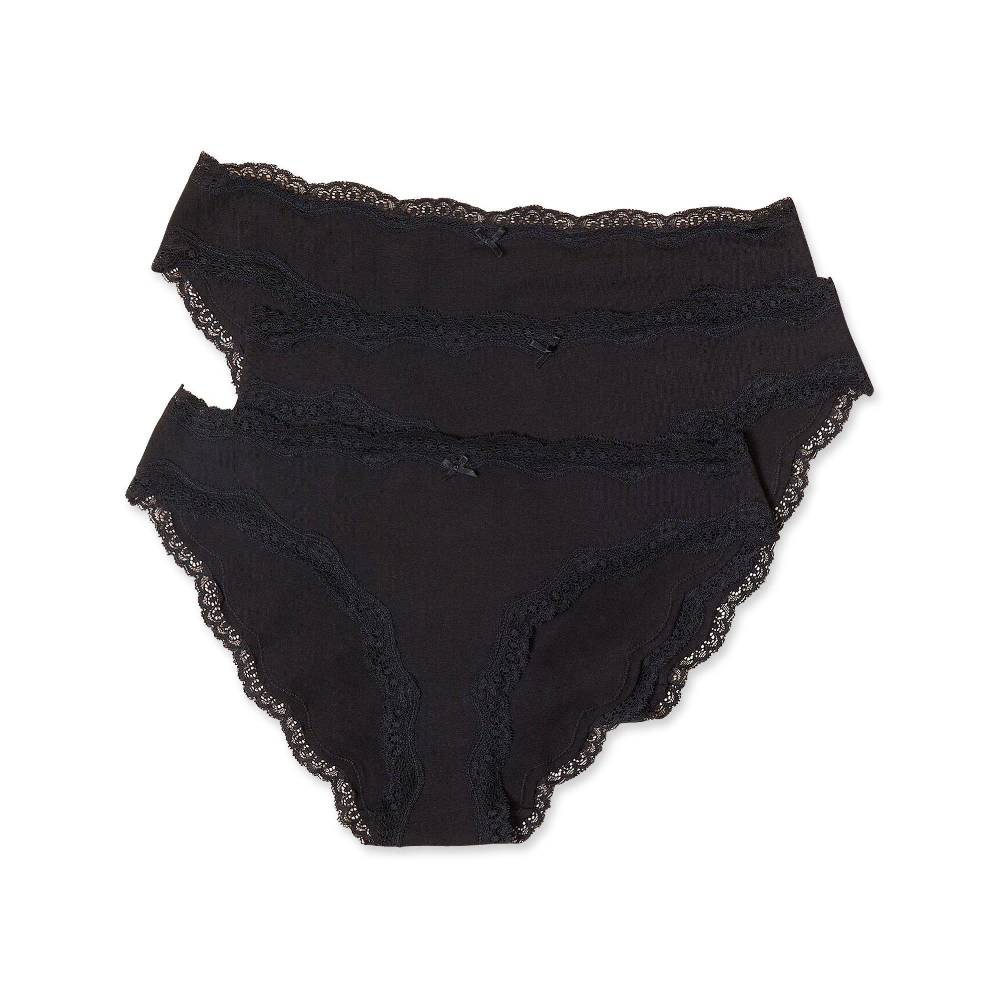 Queste mutandine comode e morbide sono i nuovi must-have di tutti i giorni. Questa confezione da tre slip offre comfort e un'estetica delicata. Ogni slip è realizzato in un tessuto morbido e adornato con un elegante bordo in pizzo lungo i bordi, fornendo un tocco raffinato agli essenziali di tutti i giorni. Un piccolo fiocco al centro davanti aggiunge un accento affascinante.