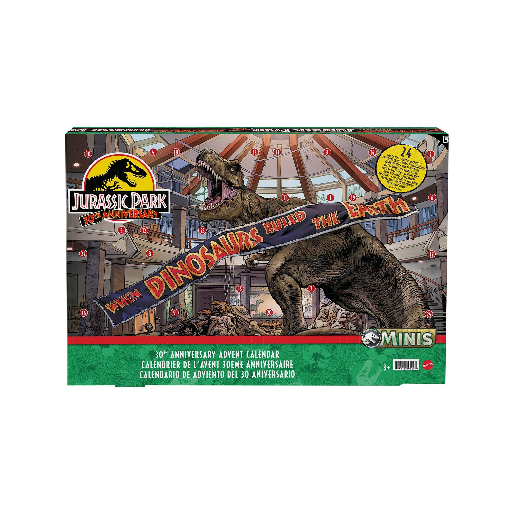 Ora l'eccitante divertimento di 24 giorni di sorprese e azione inizia davvero con Jurassic World! Questo calendario dell'avvento celebra il film originale di Jurassic Park. Ha 24 porte e contiene più di 30 parti giocattolo, tra cui 19 mini dinosauri, 1 mini figura umana e 10 parti di cancelli e piattaforme, compresi i famosi cancelli di Jurassic Park. Tutti i pezzi sono in scala rispetto alla figura alta quasi 3 cm e formano un mini playset. Il calendario dell'Avvento viene fornito in una confezione natalizia ed è un ottimo regalo per gli appassionati di dinosauri dai 3 anni in su. Il colore e il design possono variare.