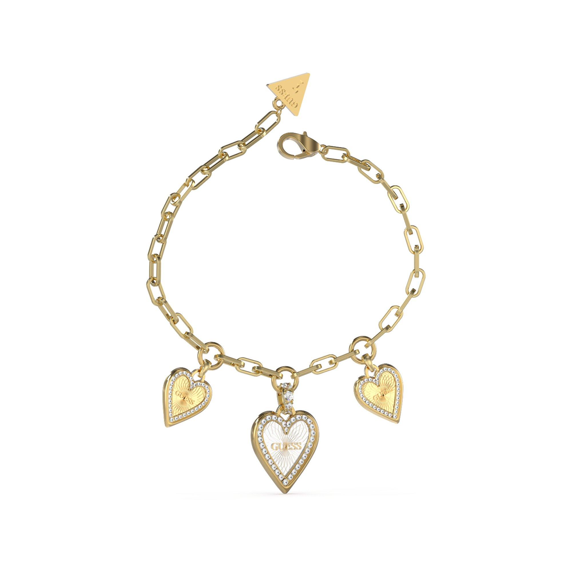 Il bracciale da donna in colore oro è realizzato in acciaio inossidabile e decorato con smalto. Ha una chiusura a moschettone e una lunghezza totale di 18,5 cm, di cui 15 cm fissi e 3,5 cm regolabili. Il dettaglio speciale sono gli zirconi, che conferiscono al design una nota di eleganza.