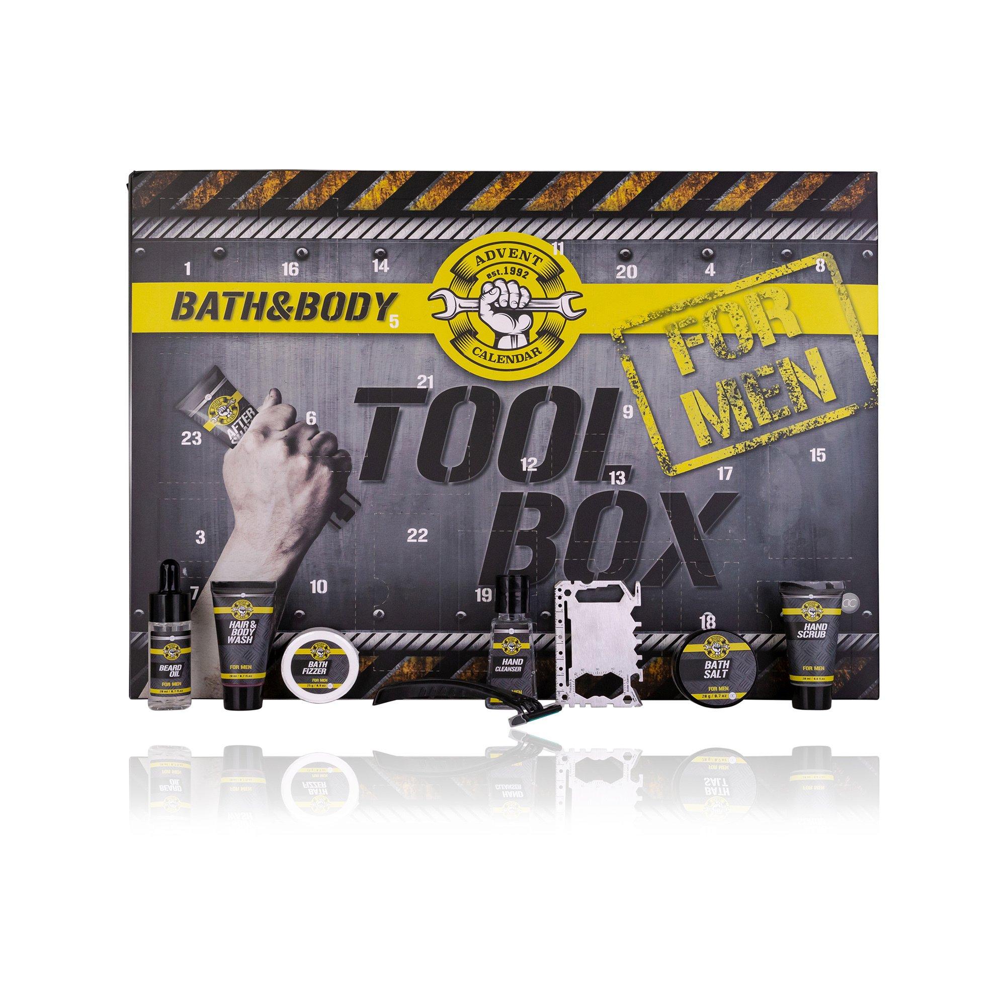 Calendario dell'Avvento BATH & BODY TOOLS in scatola rettangolare, pieno di 24 sorprese, 46 x 4 x 34cm