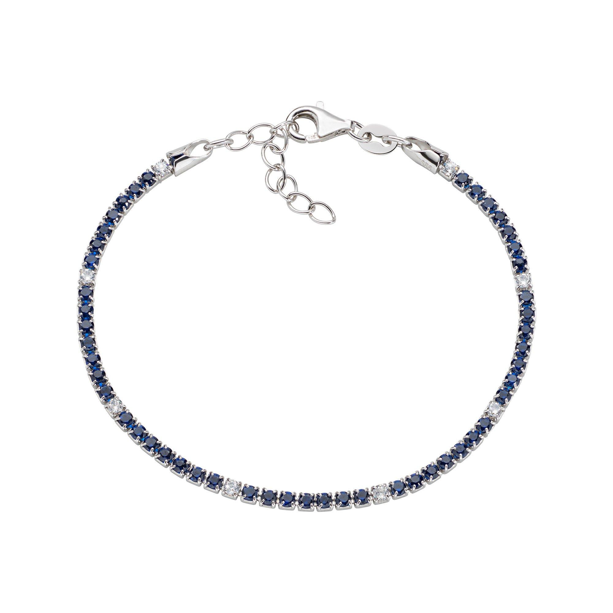 Questo braccialetto firmato Amen è realizzato in argento sterling e propone scintillanti pietre di zirconia cubica di colore blu e bianco. La lunghezza del bracciale può essere regolata individualmente.