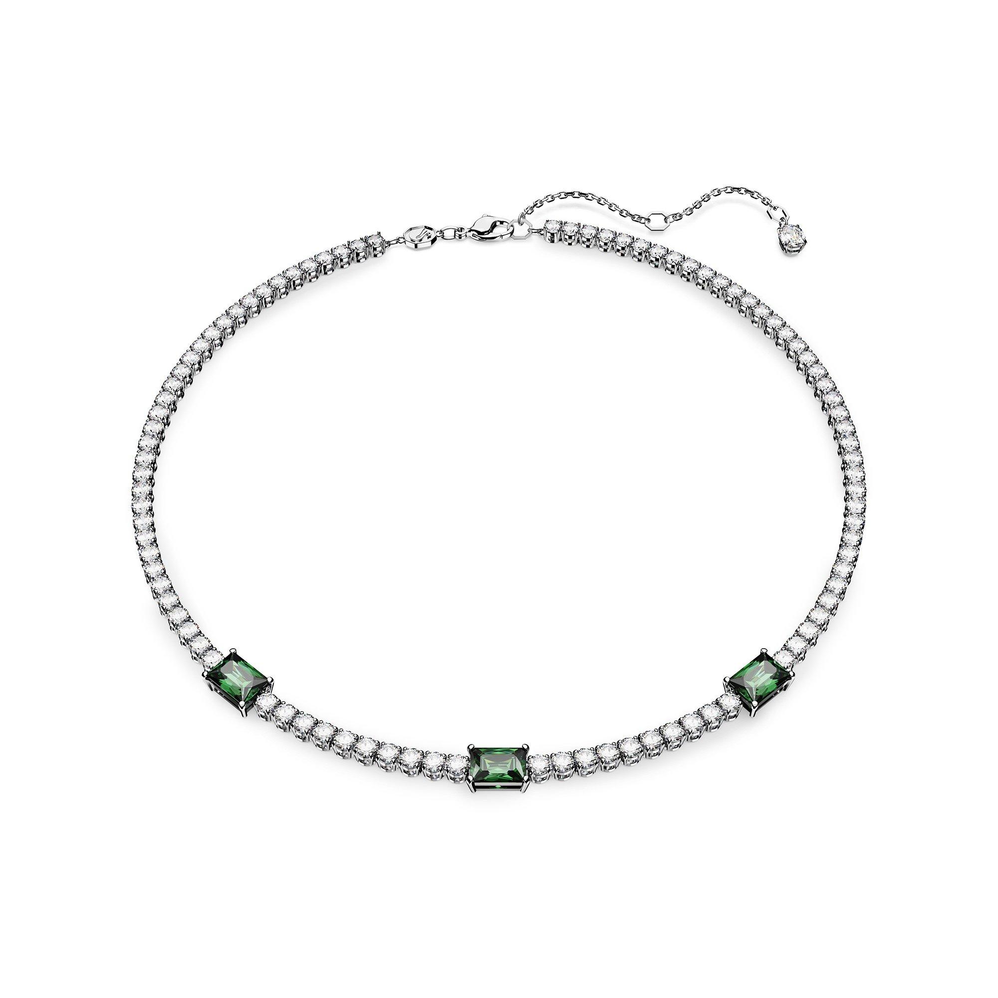 Coniugando un’eleganza classica con un tocco contemporaneo, questa collana tennis della famiglia Matrix è raffinata e lussuosa al tempo stesso. Un design di cristalli Cry rotondi a tutto tondo viene interrotto da pietre rettangolari verde intenso e il tutto è reso splendente da una montatura placcata rodio. Questo gioiello aggiungerà un tocco di glamour immediato ad ogni look festivo e sarà un regalo memorabile.