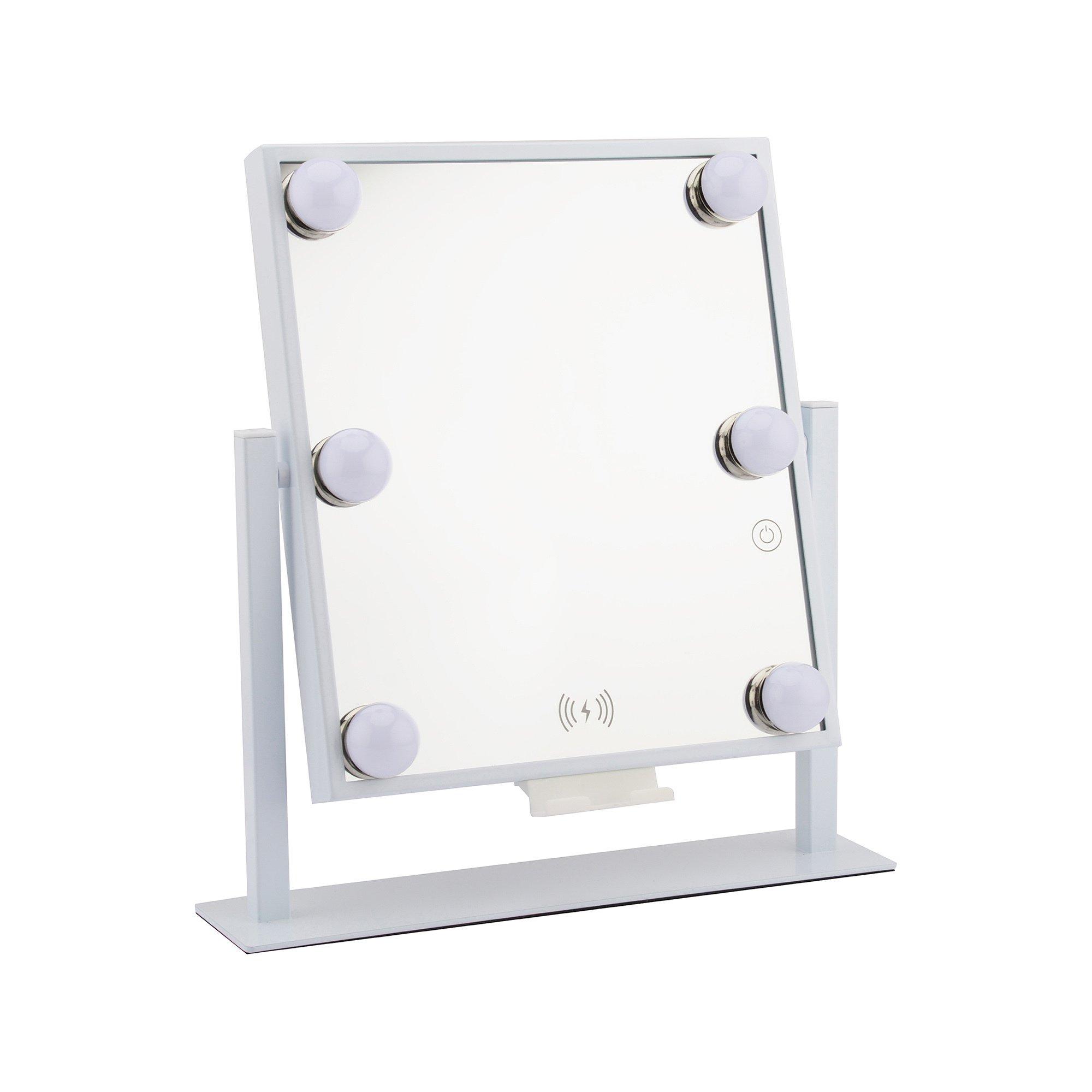 Lo STYLPRO Glam & Groove (26*30) è uno specchio vanity hollywoodiano che riproduce la musica, ricarica il telefono in modalità wireless, fornisce un'illuminazione soffusa perfetta per l'applicazione del trucco, collega le telefonate tramite gli altoparlanti integrati e molto altro ancora!