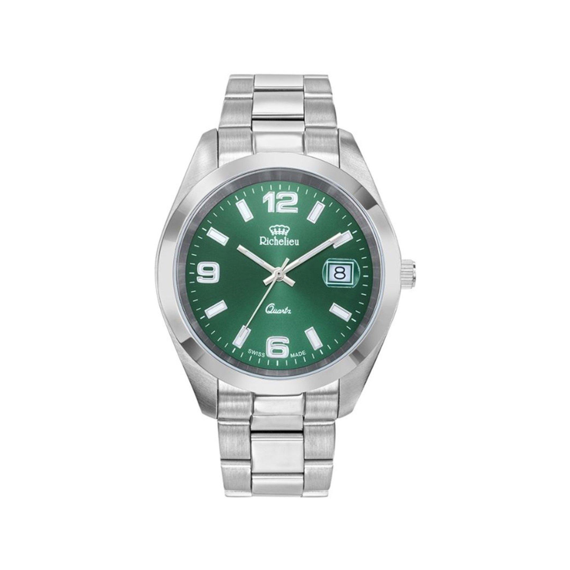 Questo orologio analogico della serie Sport di Richelieu è un resistente orologio al quarzo con datario, cinturino in acciaio inossidabile con fibbia pieghevole e coperchio in vetro minerale. L'elegante tuttofare è impermeabile fino a 50 m: un orologio affidabile per chi ama lo stile.