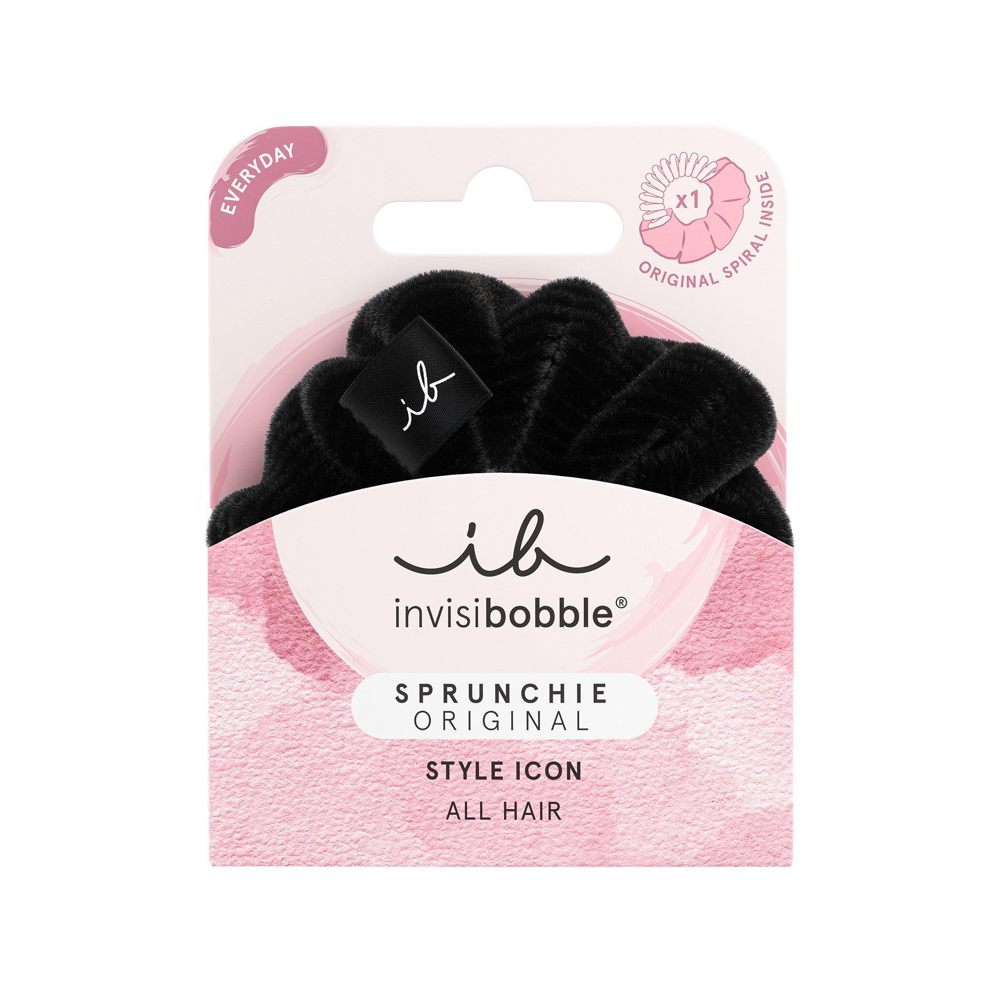 Lo Sprunchie Original nell'elegante design in velluto nero di invisibooble è ideale per ogni tipo di capelli e per le acconciature più individuali. L'elastico per capelli ha una spirale originale all'interno e garantisce così la massima tenuta.