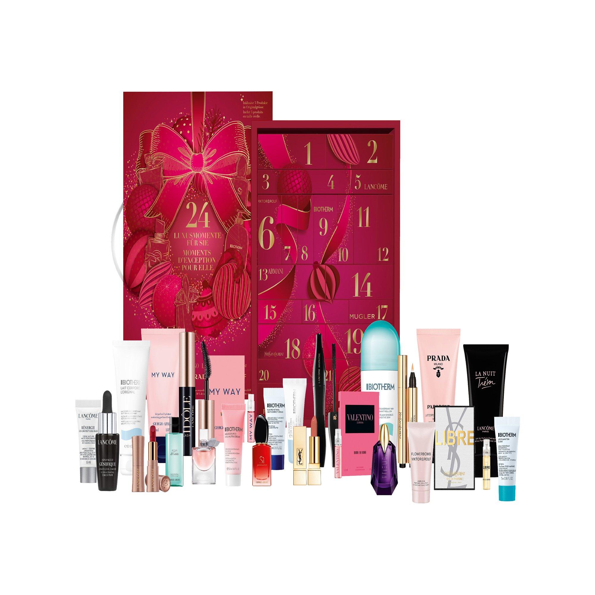 Il conto alla rovescia per il Natale è iniziato! In programma un calendario dell'avvento di bellezza con i bestseller e le novità in fatto di skincare, profumi e make-up di Lancôme, Giorgio Armani, Biotherm, Yves Saint Laurent, Valentino, Prada e altri marchi! Scoprite ogni giorno una nuova sorpresa con i vostri prodotti di bellezza preferiti. In totale, potrete scoprire 21 taglie da viaggio e 3 prodotti full-size. La confezione di questo calendario di bellezza è stata progettata per essere rispettosa dell'ambiente.
