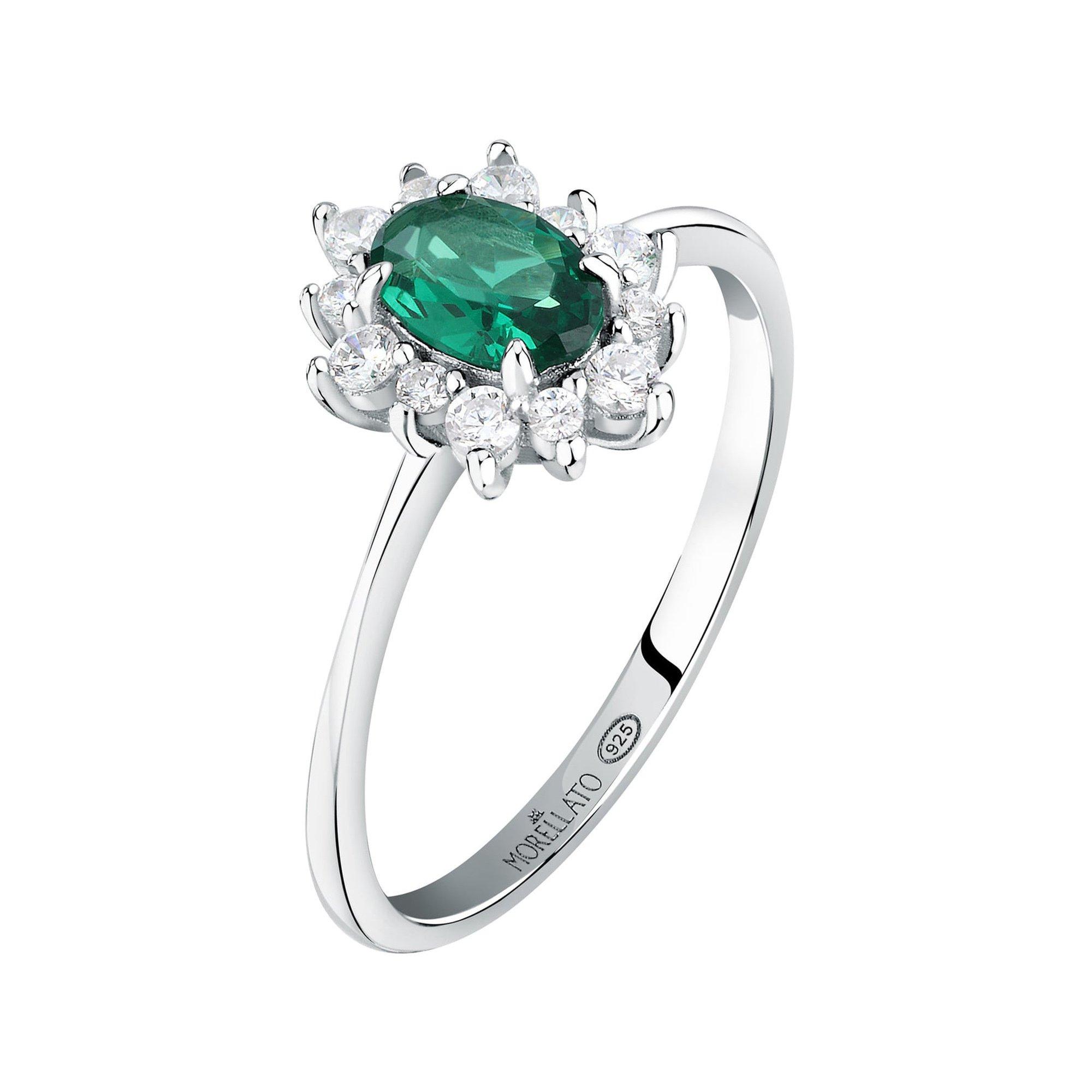 L'anello Morellato Tesori è un anello da donna in argento 925‰ con pietre preziose. Pesa 2 grammi e ha zirconi nei colori bianco e verde. Il design è elegante e adatto alle occasioni speciali.