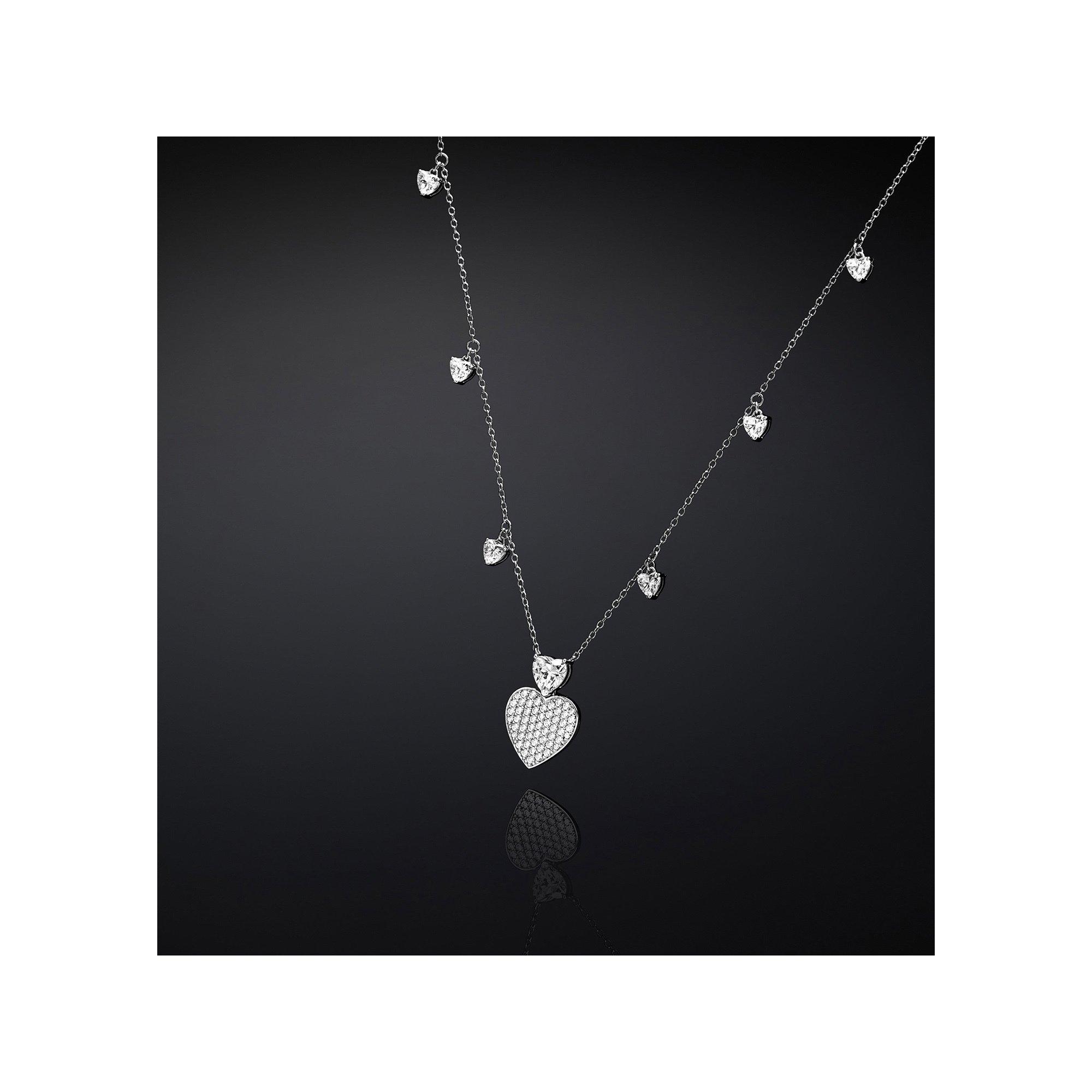 Collana in argento sterling 925 con zirconi bianchi a forma di cuore e ciondolo a pavé centrale.