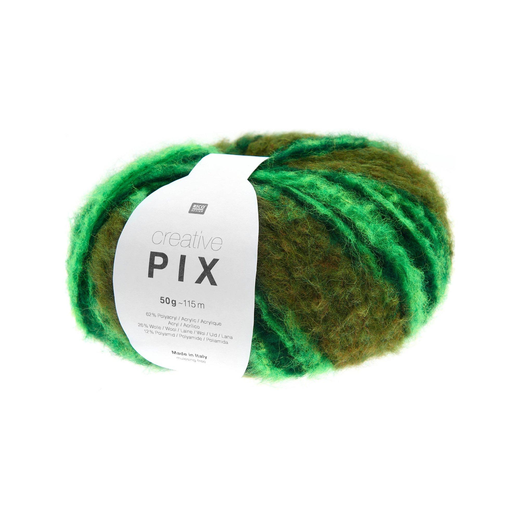 Creativ Pix è un filato morbidissimo e molto leggero con un filo soffice. La speciale struttura del filato crea maglie spesse e uniformemente soffici. La stampa irregolare del filato presenta forti variazioni di colore e accenti neon. Le combinazioni di colori sono sorprendenti e fresche.