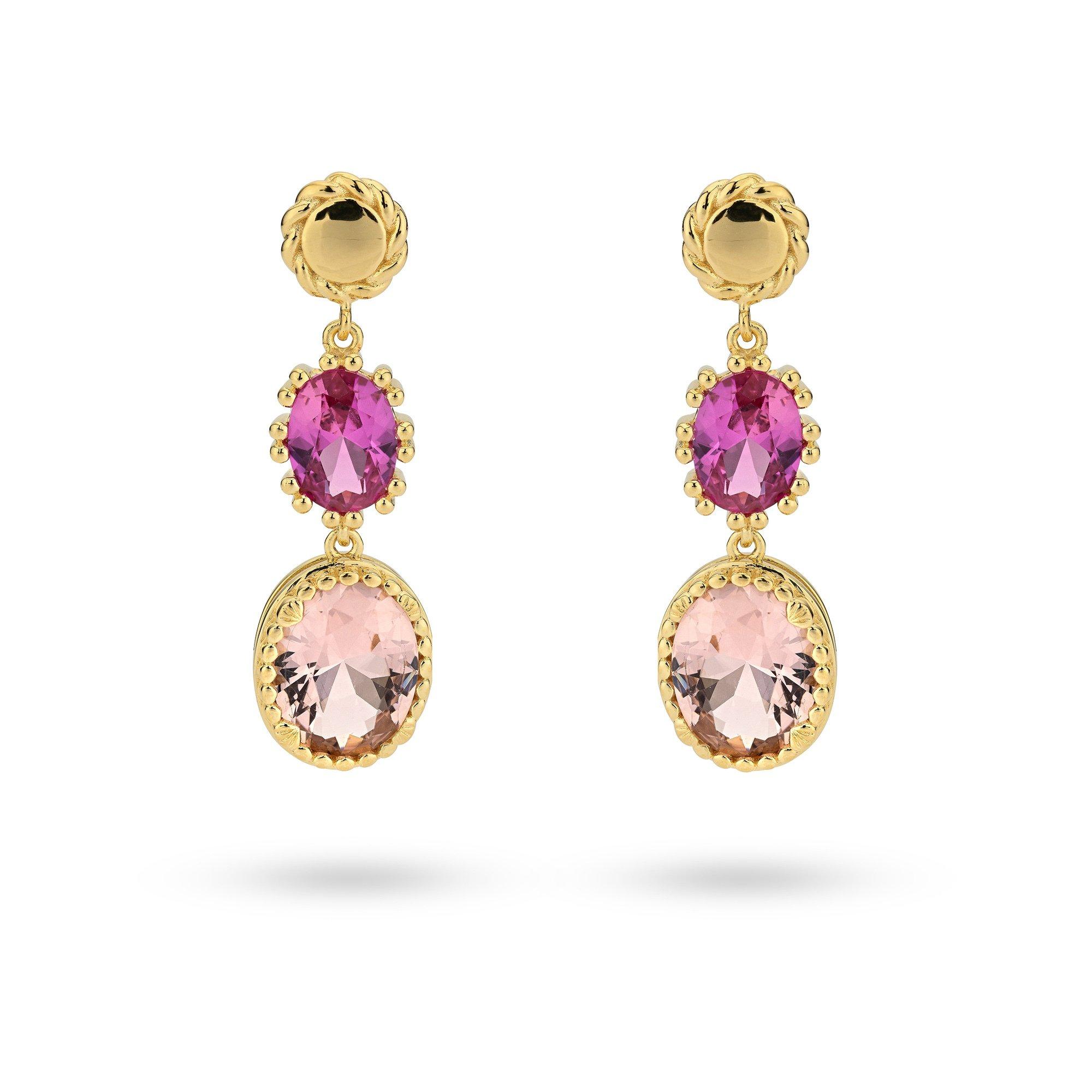 Questi orecchini 24Kae hanno una bellissima pietra rosa chiaro e scuro. Sono molto versatili e perfetti per ogni occasione.