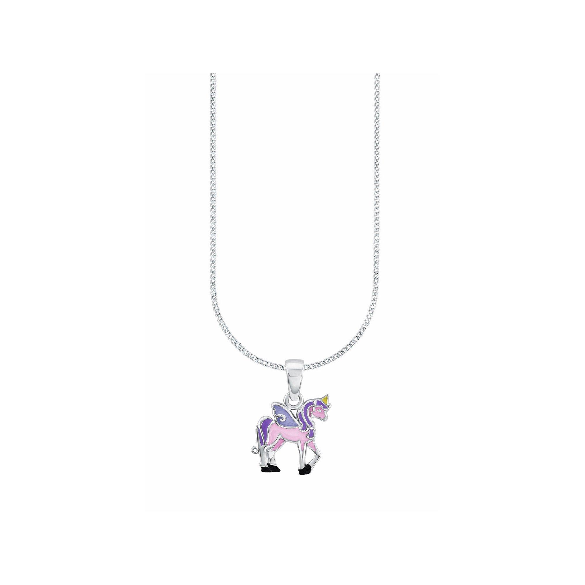 Questa collana con ciondolo unicorno di Rosie farà battere il cuore delle ragazze. La catena regolabile (35+3 cm) a piastre piatte e il simpatico ciondolo sono in argento sterling 925. Il ciondolo è anche rivestito di smalto e protetto dall'appannamento da un rivestimento in rodio di alta qualità. Questo rivestimento promette che la collana rimarrà lucida e bella per molto tempo. La collana è particolarmente facile da maneggiare e può essere fissata con un pratico moschettone.
