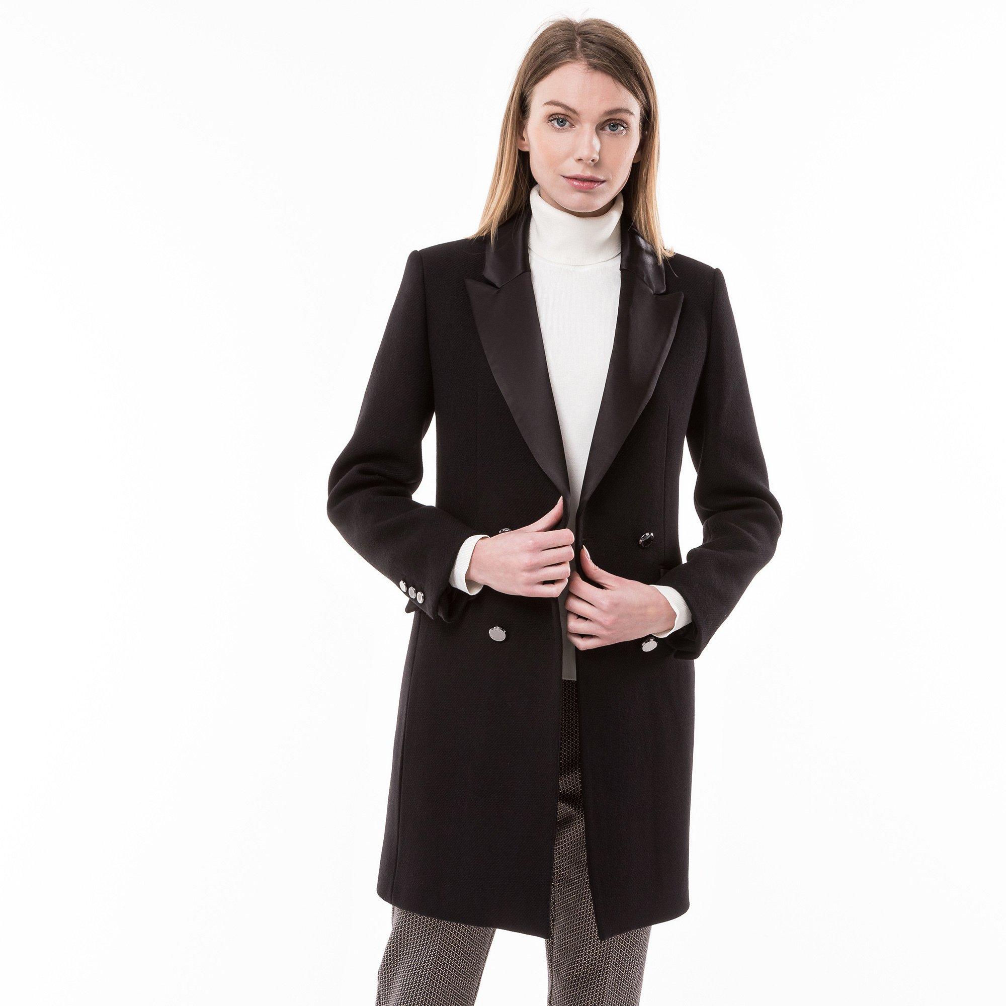 Questo cappotto corto firmato Morgan è realizzato in un caldo mix di lana. Il doppiopetto sfoggia un taglio dritto ed elegante, un classico colletto a revers, tasche con patta satinata e spacco.
