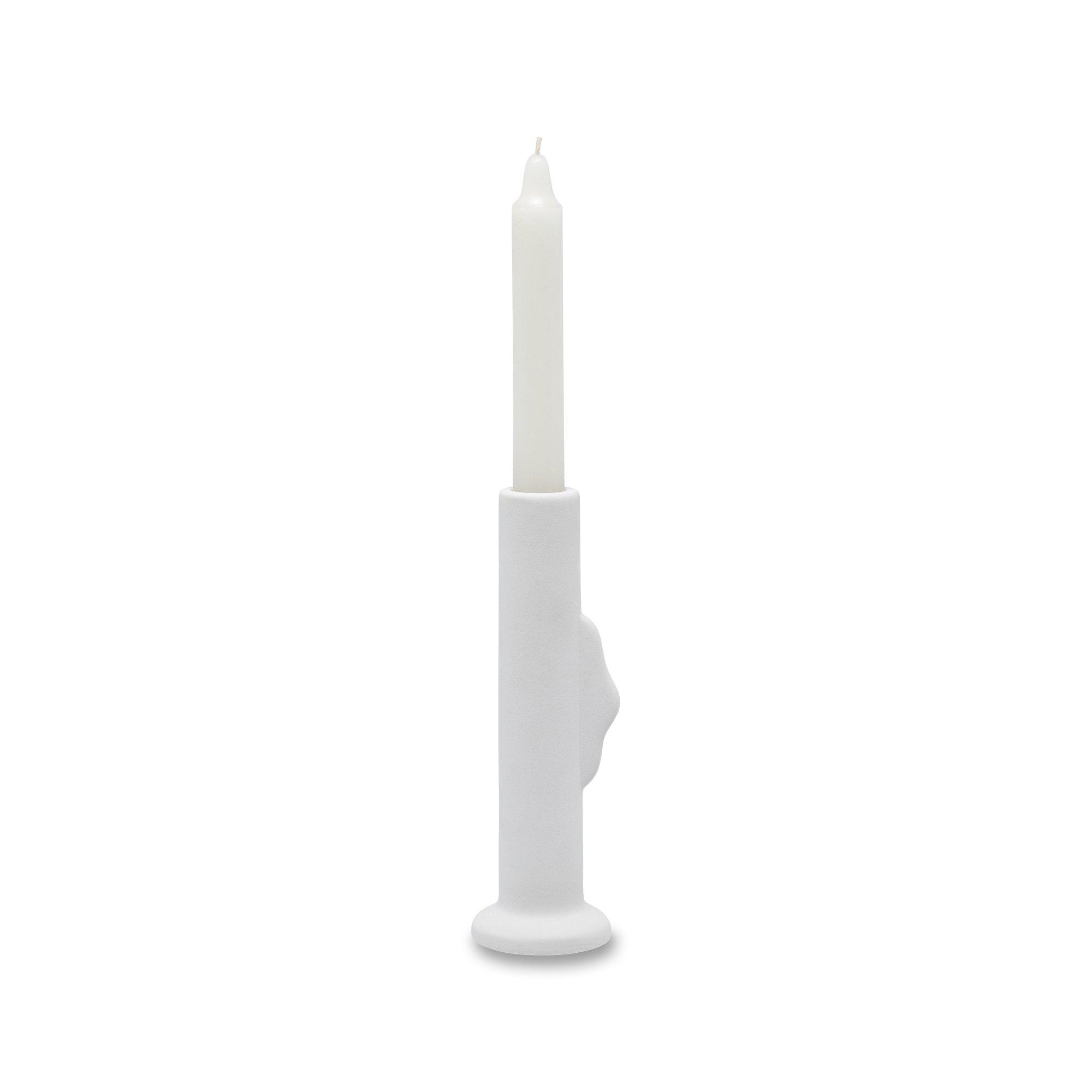 Questo portacandele firmato Manor realizzato in ceramica ruvida e opaca si concentra sulla luce delle candele e crea un'atmosfera con un design minimalista.