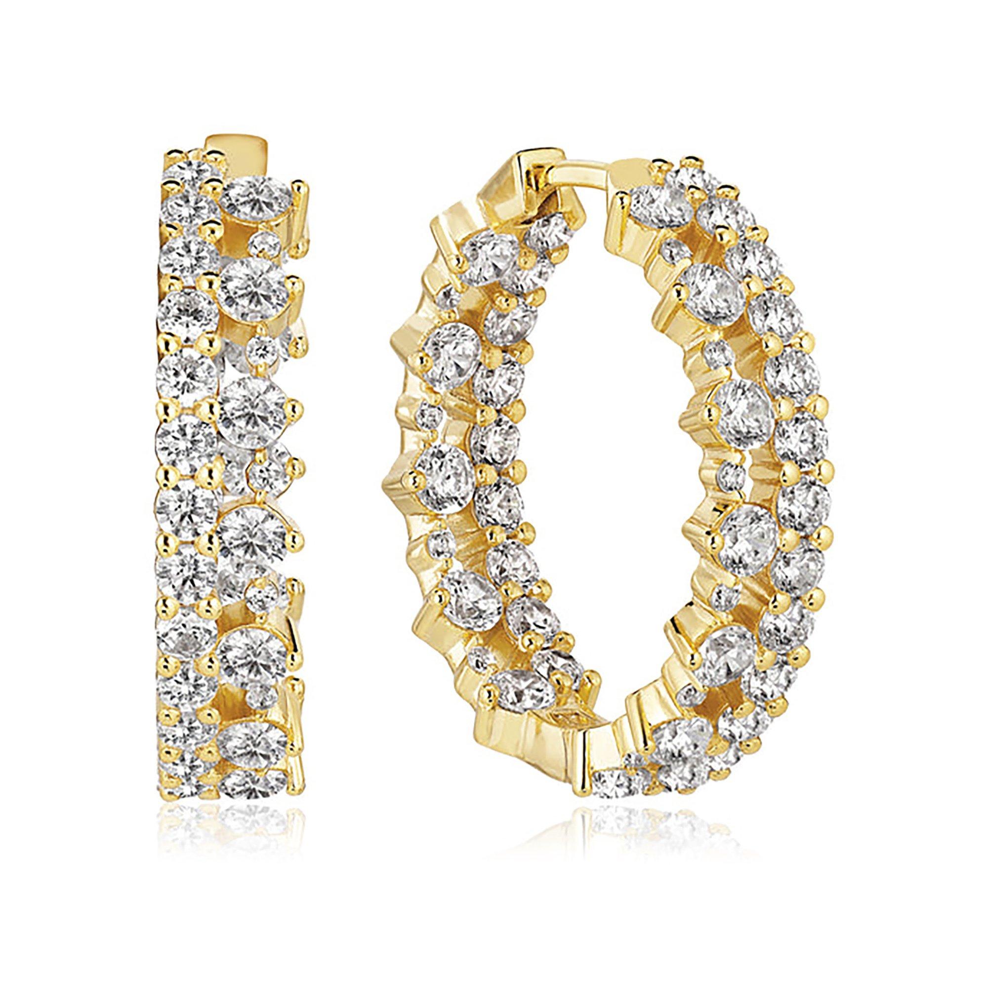 Orecchini in argento Sterling 925 con superficie rodiata e lucida e incastonati a mano con zirconi bianchi tagliati a faccetta.