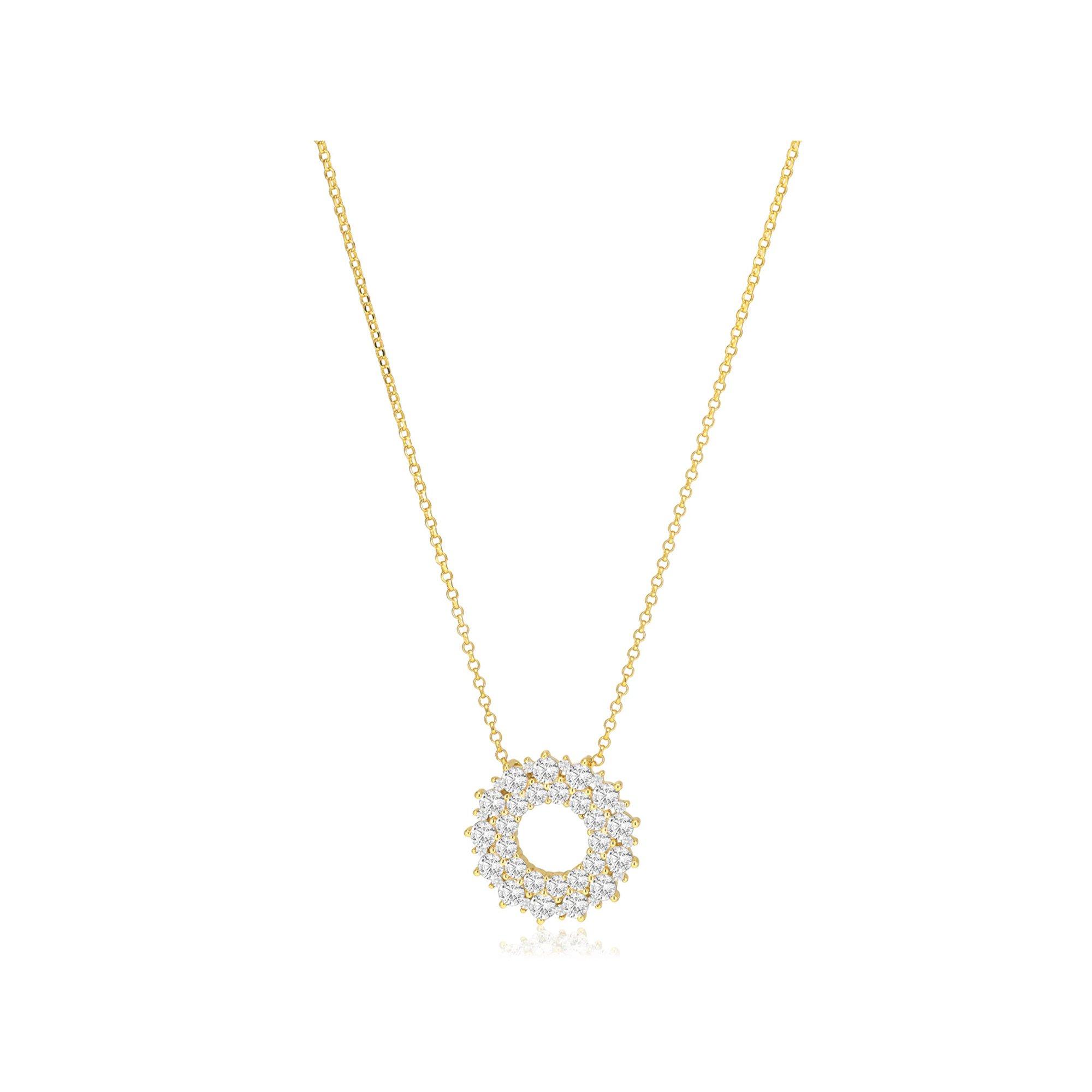 Collana in argento Sterling 925 placcato oro 18 carati, con superficie lucida e incastonatura a mano di zirconi bianchi tagliati a faccetta.