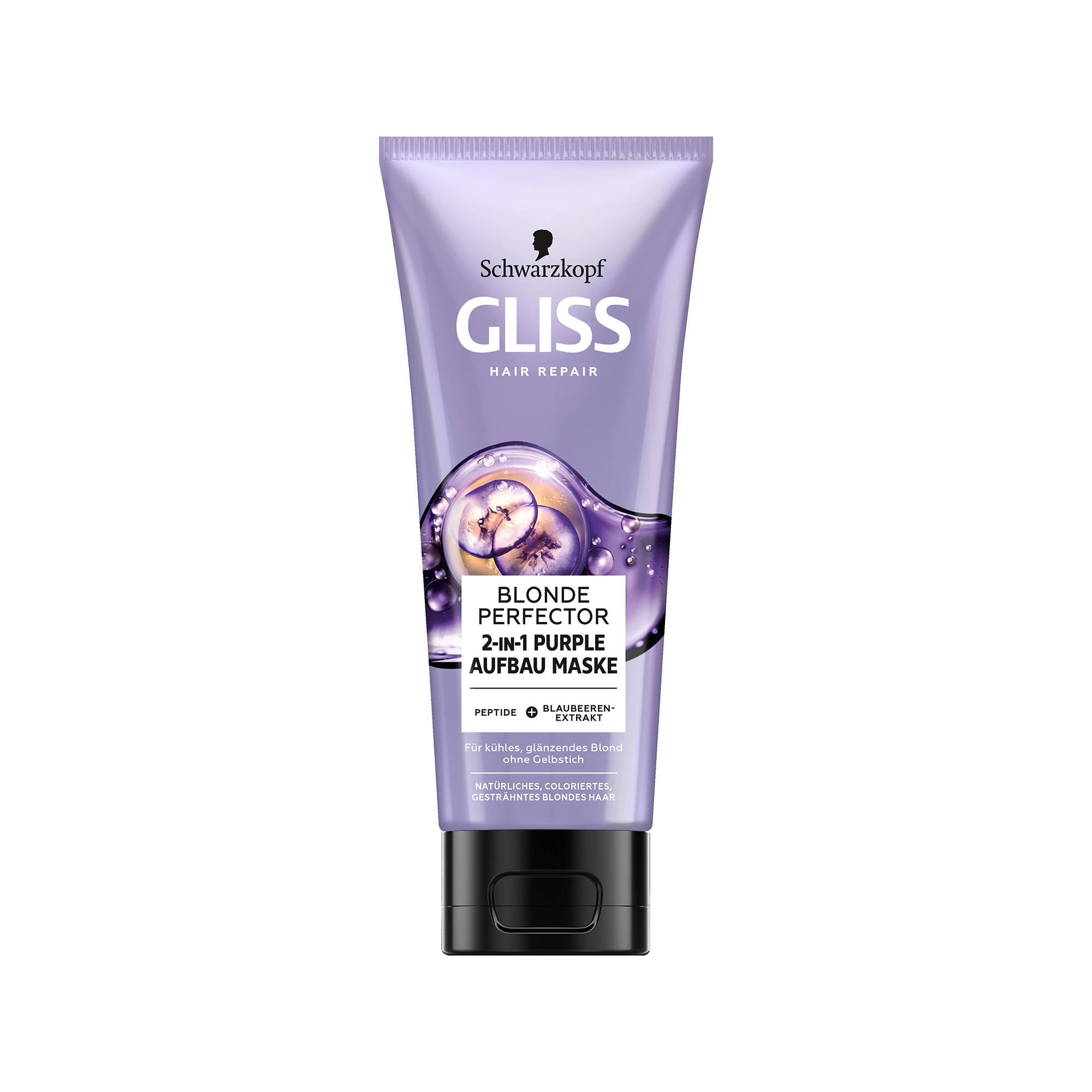 - Anti-ingiallimento - Il trattamento per capelli Gliss Blonde Perfector con peptidi ed estratto di mirtillo ripara in profondità i capelli danneggiati e dona un colore biondo fresco e brillante.