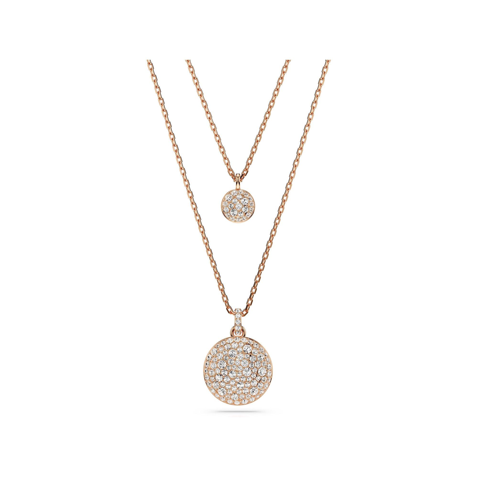 Questo scintillante pendente stratificato è il mezzo ideale per far risplendere il tuo stile di pura luce. Il design placcato color oro rosa presenta due catenine, ciascuna con un motivo a cupola a forma di meteora, splendidamente impreziosito da un pavé a neve di cristalli Cry rotondi di diverse dimensioni. Per un tocco di versatilità in più, il pendente può essere invertito, rivelando un alone di cristalli attorno al motivo più grande ed un singolo cristallo al centro del motivo più piccolo. Un’idea regalo meravigliosa per te o per una persona che ami.