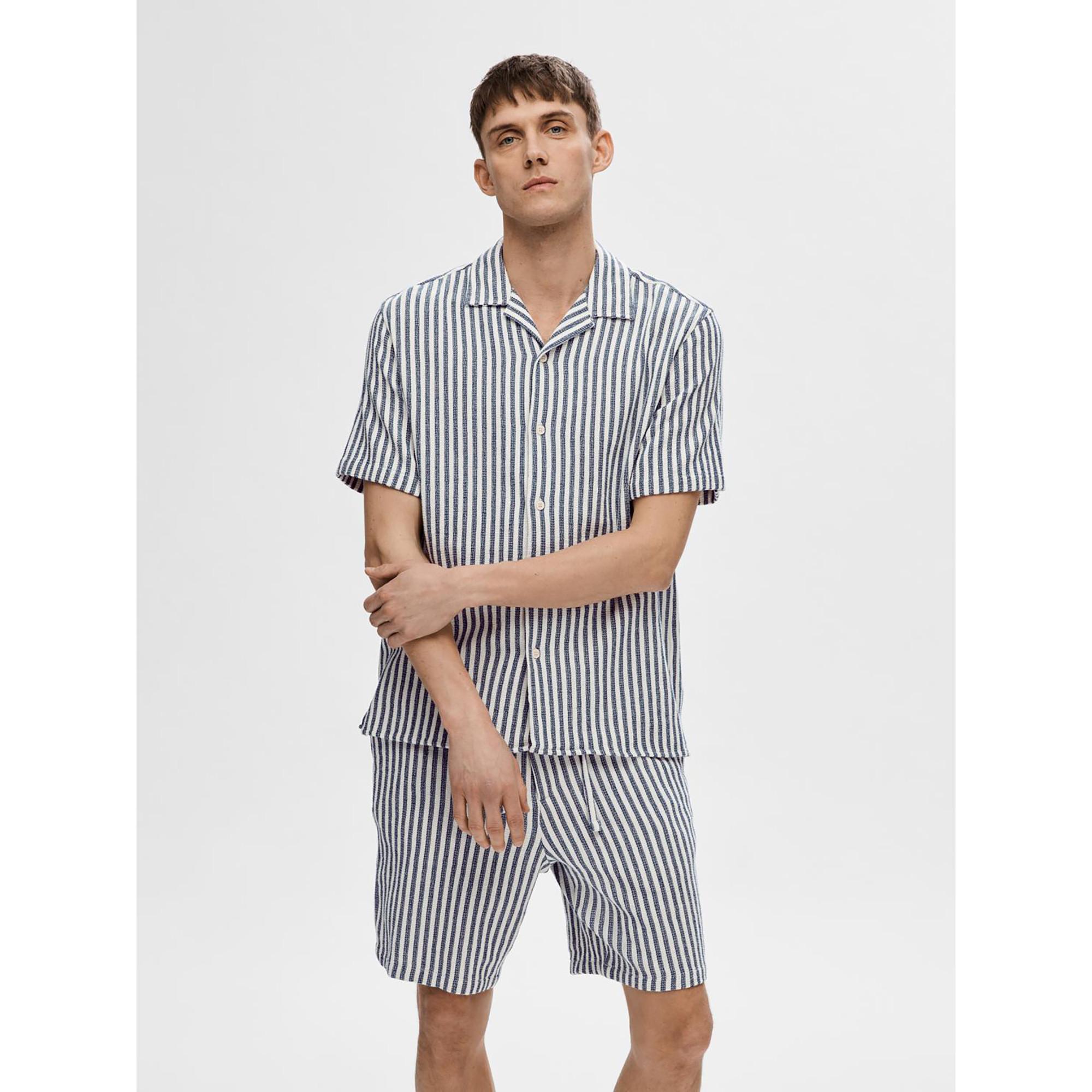 SELECTED Relaxed Sal Camicia a Righe Maniche Corte