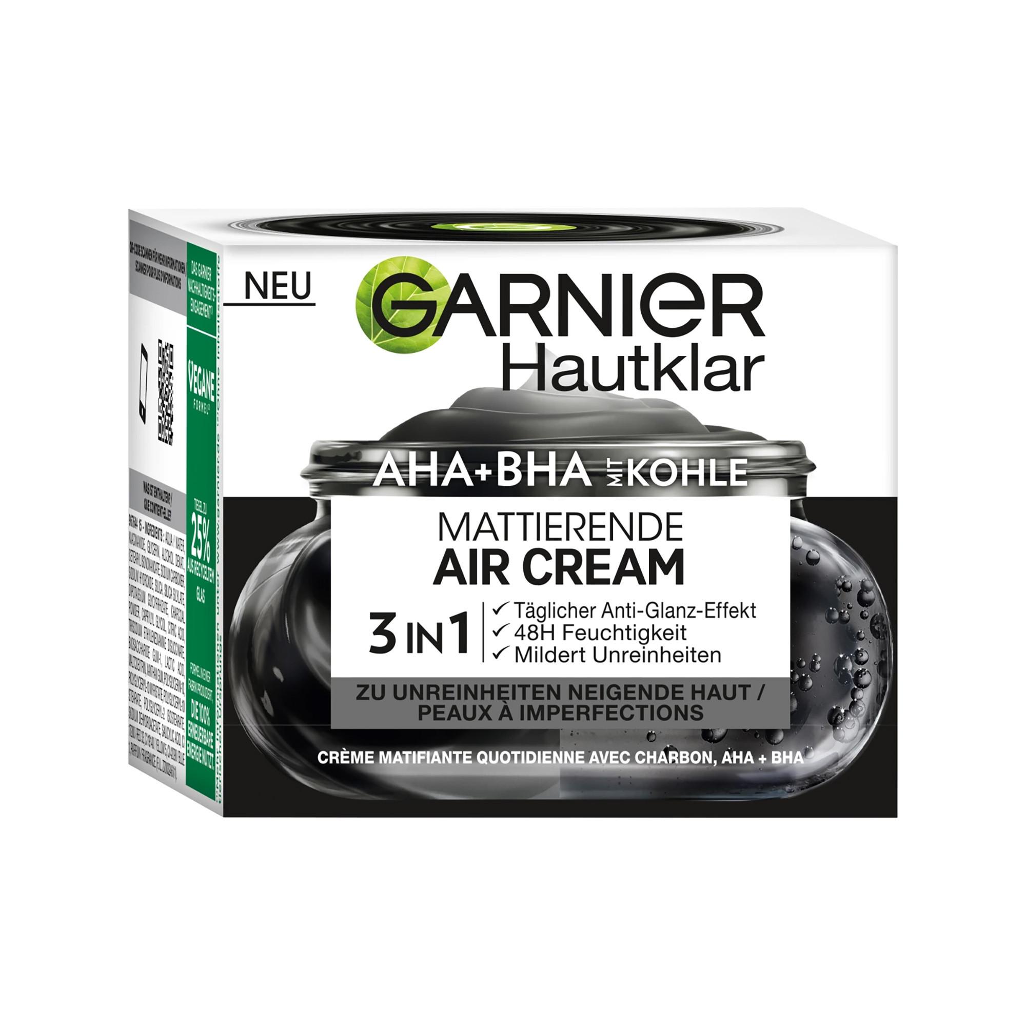 Garnier SkinActive AHA+BHA 3-in-1 Crema Aerea Opacizzante con Carbone è una crema viso 3-in-1 che riduce le imperfezioni, regola la produzione di sebo della pelle e idrata fino a 48 ore. La texture leggera e gelosa è arricchita con niacinamide, BHA e AHA. La crema viso nera non lascia tracce e penetra rapidamente nella pelle, senza appiccicare. Dopo una sola applicazione, la pelle è visibilmente più liscia e idratata, meno grassa e più equilibrata. Dopo 4 settimane di utilizzo, i pori del viso sono notevolmente ridotti e brufoli e punti neri appaiono meno visibili.