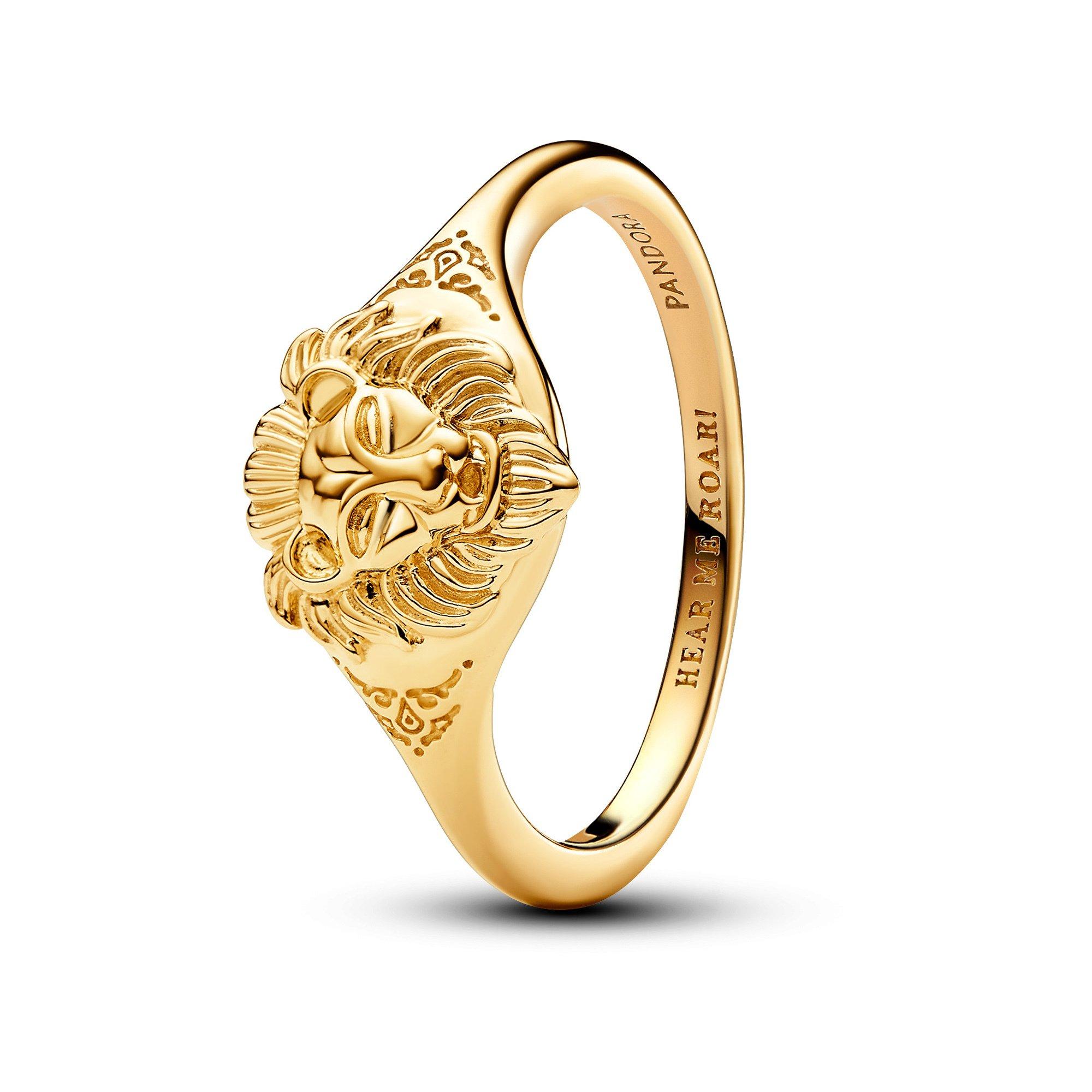 Dimostra il tuo lato più iconico con l'anello Leone dei Lannister della collezione Game of Thrones x Pandora. Perfetto per le amanti del clan Lannister, questo anello con placcatura in oro presenta l'incisione "HEAR ME ROAR" (ASCOLTA IL MIO RUGGITO) insieme al motivo della testa di leone. Ispirato all'anello di Tyrion Lannister, rappresenta un sigillo di famiglia. Indossalo come simbolo di orgoglio verso la tua famiglia o regalalo a un’amante di Game of Thrones.