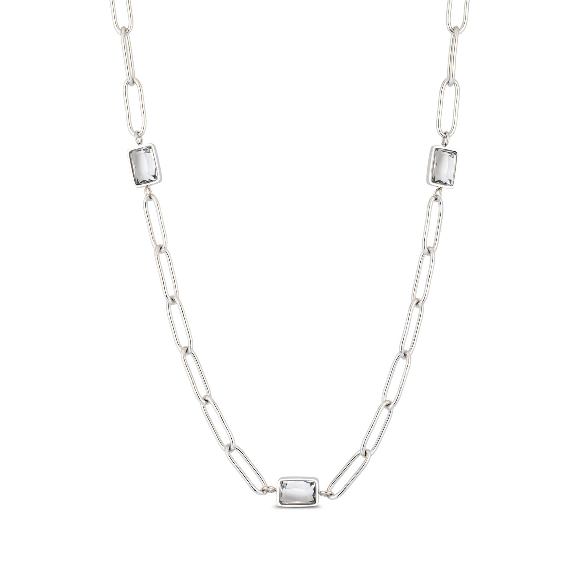 Questa catena firmata L'Atelier è realizzata in acciaio inossidabile ed è indossata aderente. Le singole maglie rettangolari con pietre preziose sfaccettate integrate creano accenti particolari. La catena con le maglie oversize è regolabile in lunghezza e si adatta come dettaglio coronamento a un look rilassato e urbano.