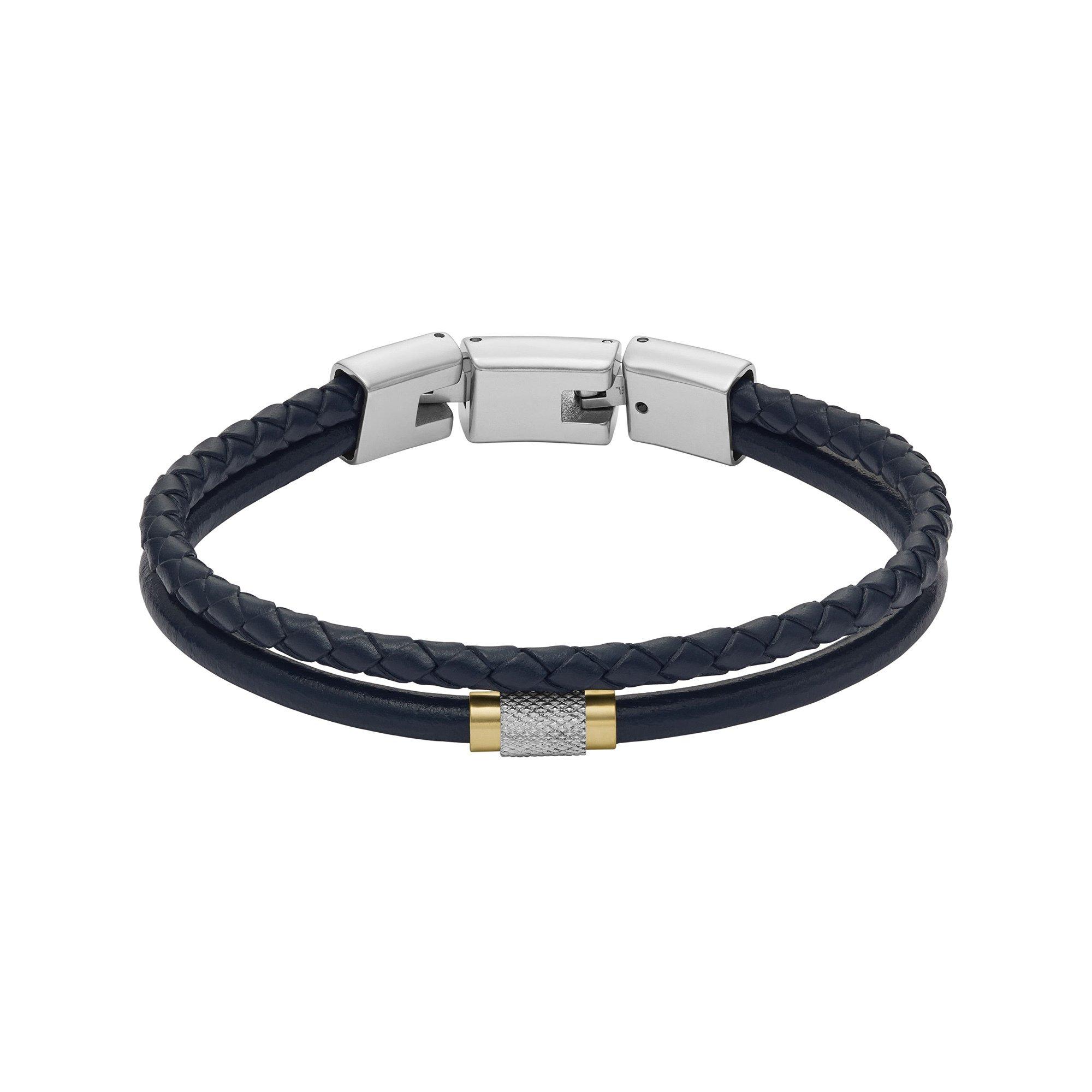Questo bracciale a più file in pelle blu scuro ha una fibbia ad ardiglione.