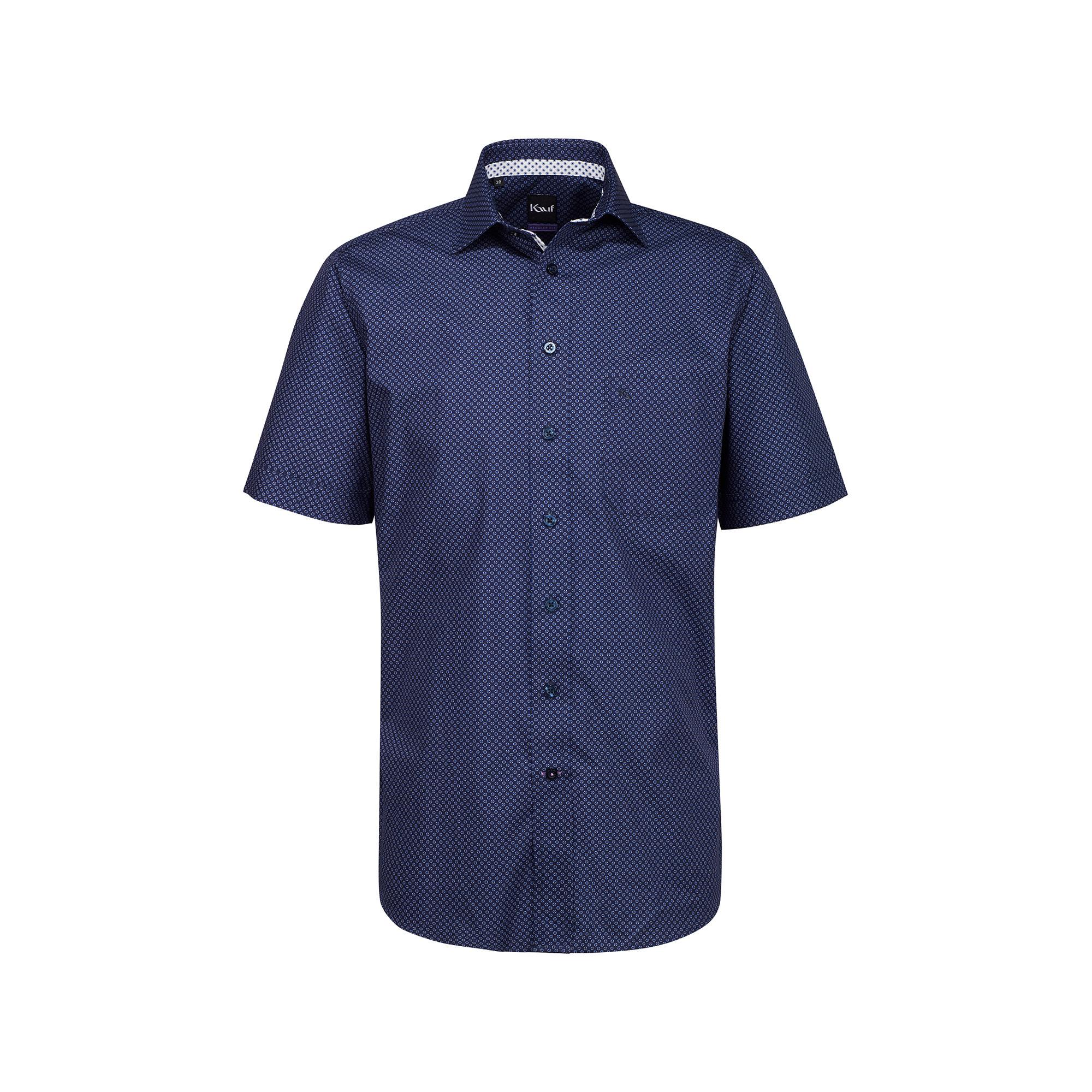 Questa camicia da uomo firmata Kauf è realizzata in puro cotone e propone una fantasia sobria, una vestibilità regolare e un classico colletto alla francese, un taschino sul petto e un orlo arrotondato.
