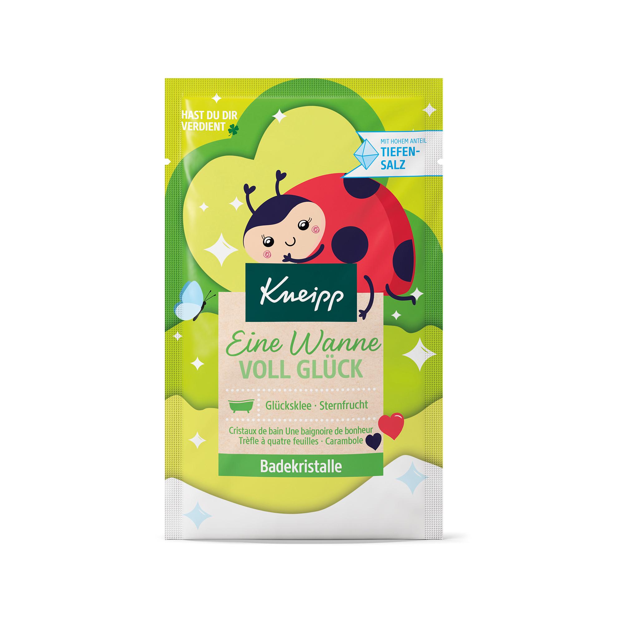 Entrate in una vasca piena di felicità con i cristalli da bagno Kneipp® con estratti naturali di frutti di stella e trifoglio fortunato. Godetevi il vostro personale momento di felicità con la fragranza fruttata e fresca e l'allegra acqua verde del bagno. Perché ve lo meritate!