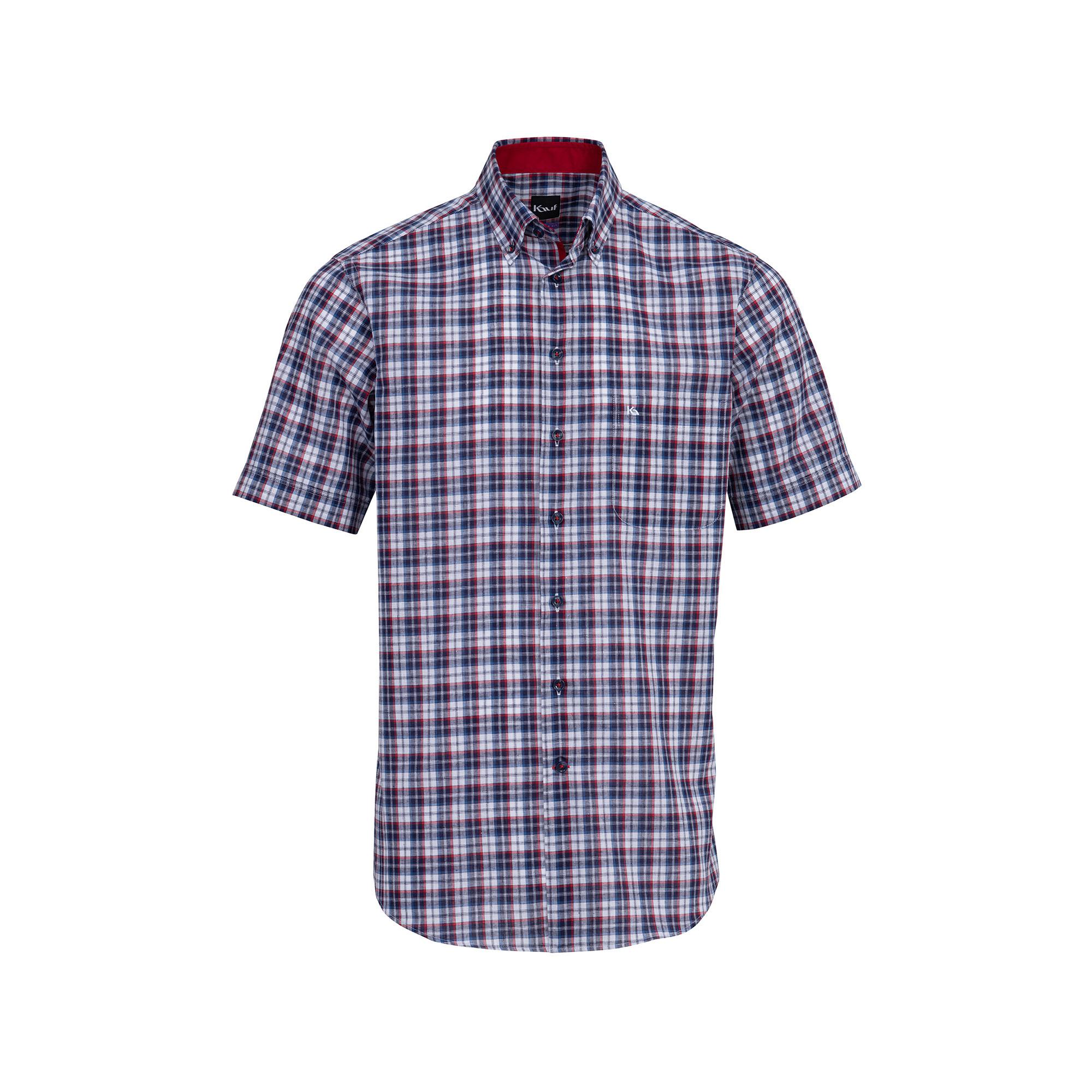 Questa camicia casual a quadri firmata Kauf è realizzata in tessuto di cotone e lino fresco e traspirante ed è il capo basic perfetto per le giornate calde. È dotata di un classico colletto con bottoncini, maniche corte e un orlo arrotondato.