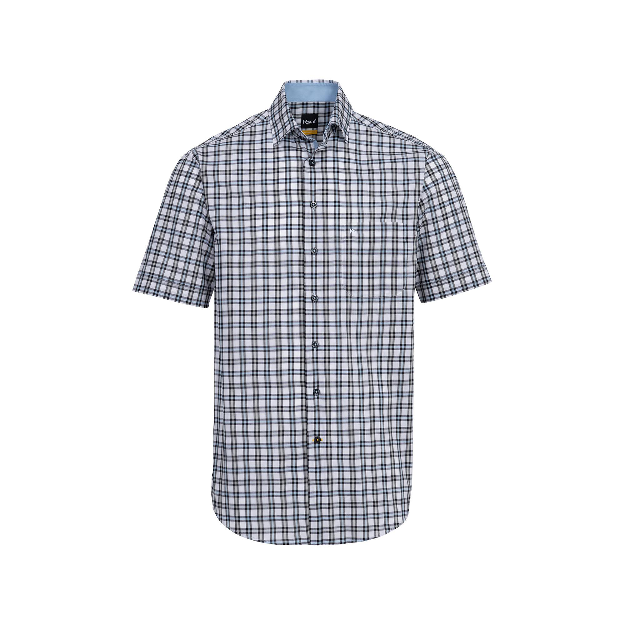 Questa camicia dal taglio stretto firmata Kauf è realizzata in puro cotone e dotata di un classico colletto alla francese e un taschino sul petto. Un capo basic a maniche corte che si può abbinare a outfit informali per il tempo libero e al guardaroba informale da ufficio.