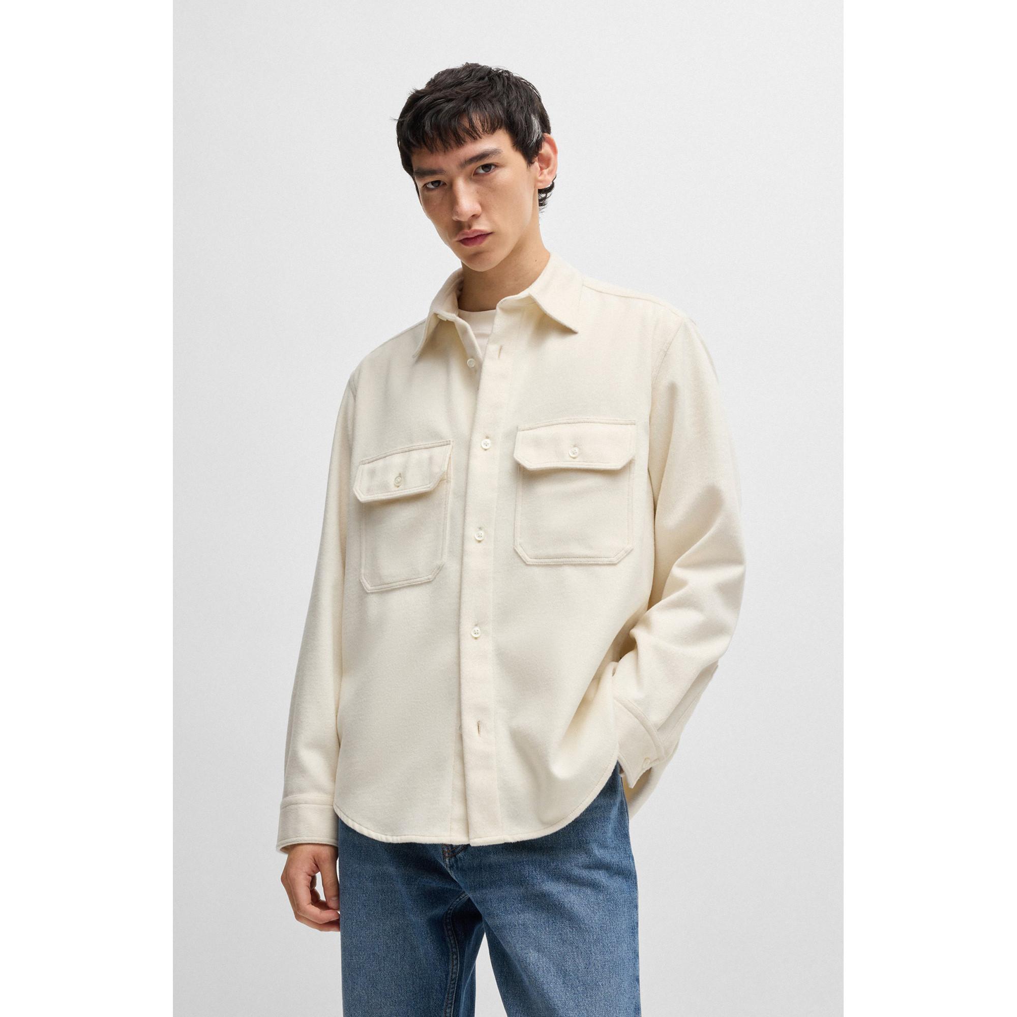 Camicia contemporanea con tasche con patta sul petto. Il modello con vestibilità oversize è realizzato in flanella spazzolata con una percentuale di lana.