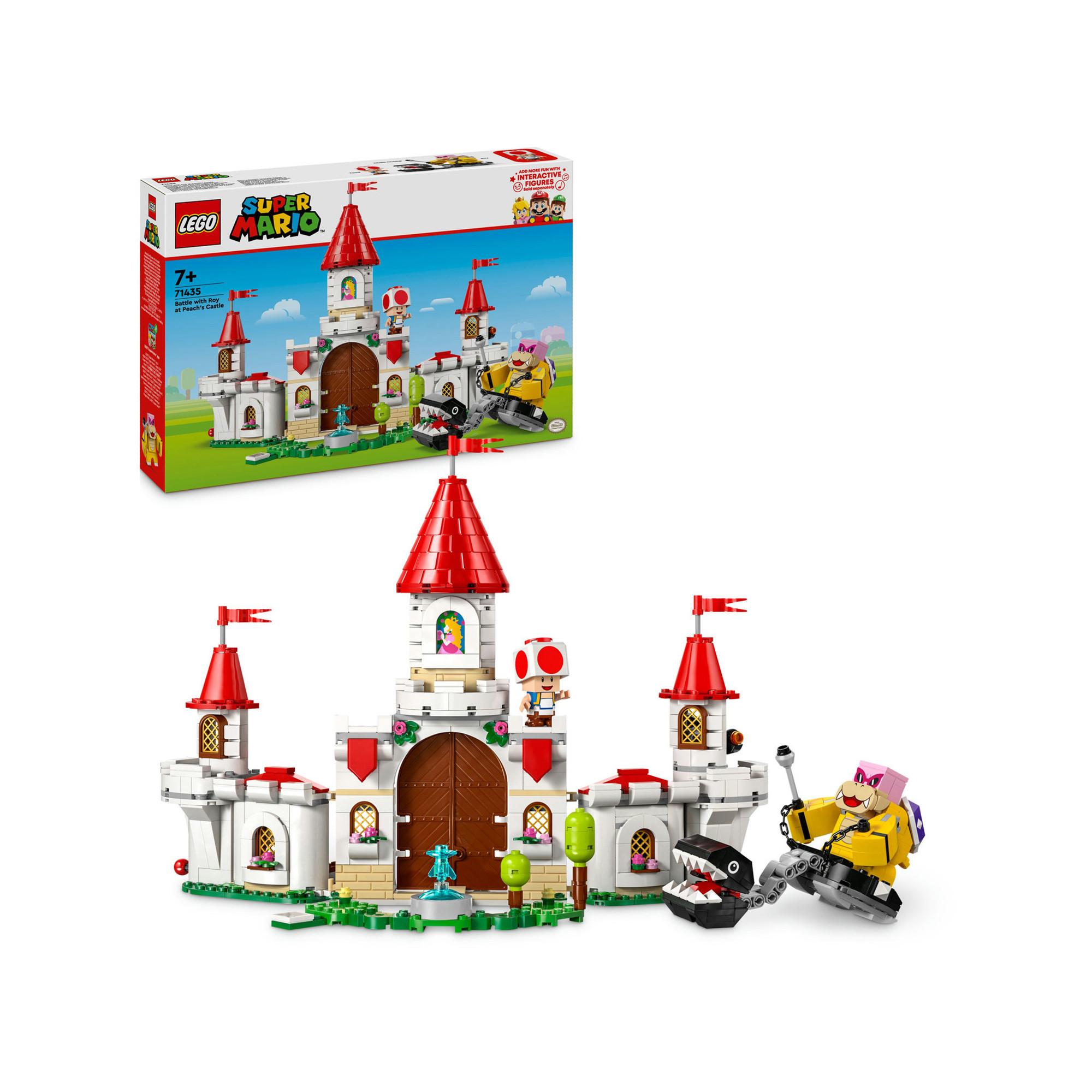Questo set è un fantastico regalo di compleanno per i fan dei gadget e dei personaggi Nintedo, e contiene il modellino da costruire del castello della principessa Peach in mattoncini LEGO. Il modello è dotato di mura che crollano sotto assedio (facili da ricostruire), di una torre, di una catapulta giocattolo, di un trono girevole e di una fontana nel giardino. Sono inclusi 3 personaggi giocattolo LEGO Super Mario: Roy (per la prima volta in un set LEGO Super Mario), un Categnaccio e Toad. Basta aggiungere LEGO Mario, LEGO Luigi o LEGO Peach (non inclusi) per il gioco interattivo. I piccoli possono aiutare i loro eroi a sconfiggere Roy e a prendere il controllo del suo Categnaccio, trovando le Action Tag nascoste con cui sbloccare le reazioni digitali come la musica del pianoforte.