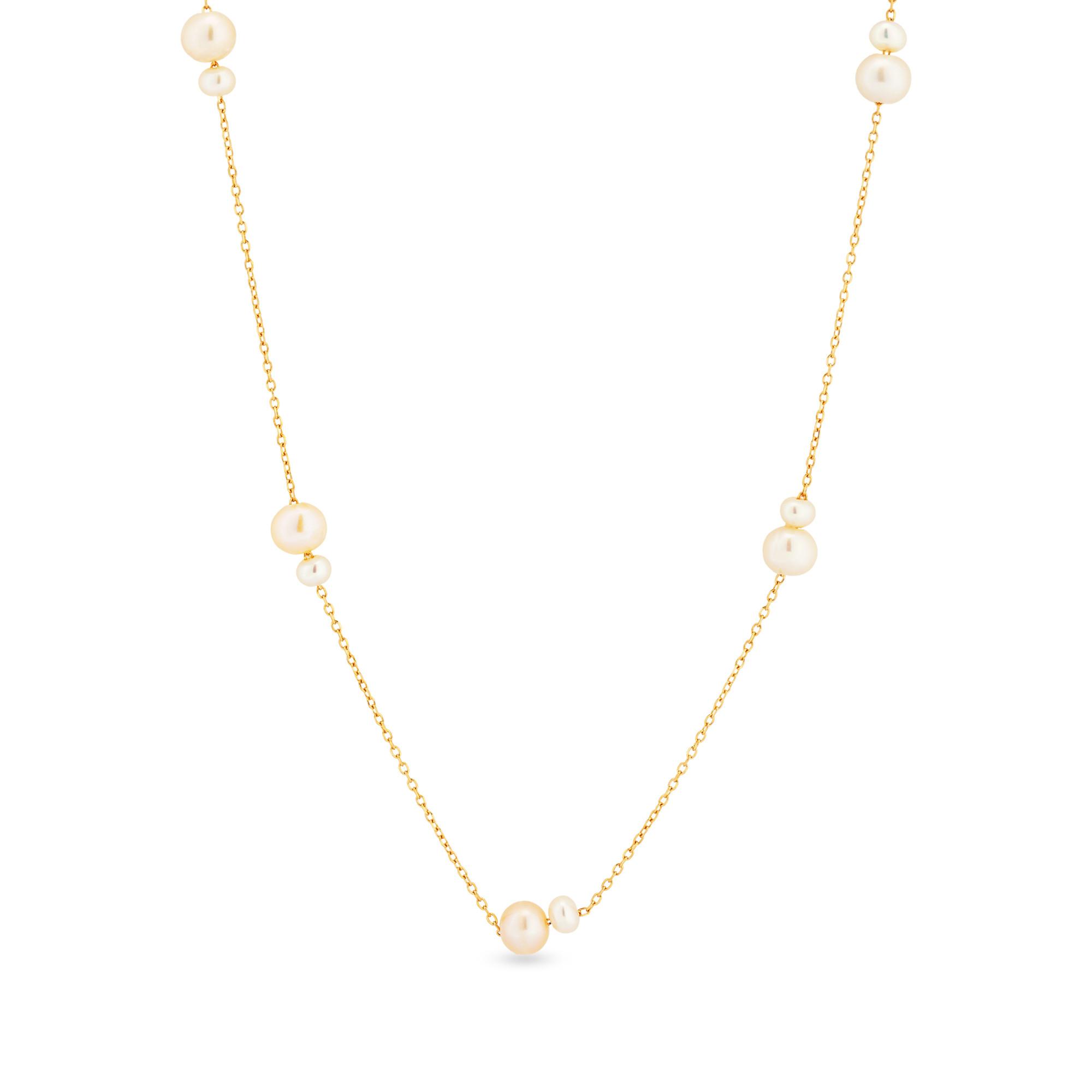Questa collana in oro giallo firmata Puro è decorata con perle d'acqua dolce in due diverse dimensioni. Il gioiello in filigrana si chiude con un anello a molla ed è di lunghezza variabile.