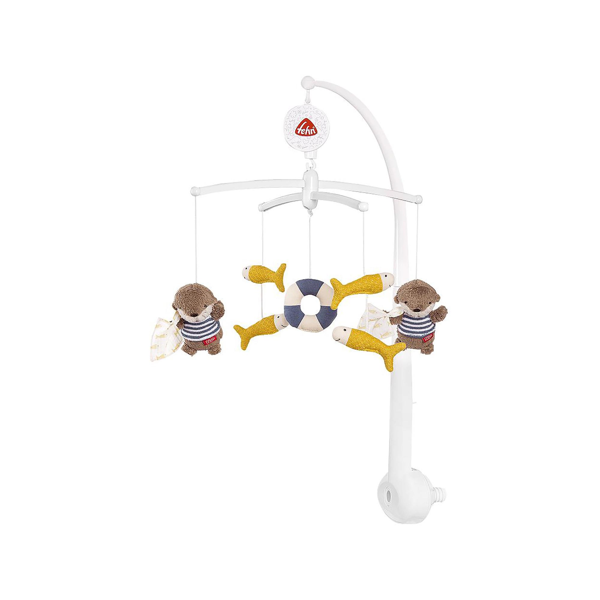 "Giostrina a carica con melodia del carillon ""Ninnananna di Mozart"" e figure per tranquillizzare e fare attività – Con attacco per lettino per bambini da 0 a 5 mesi La giostrina a carica fa brillare gli occhi dei bambini: l'avventuroso mondo della lontra e degli amici dei pesci in blu e giallo invita ad ascoltare e meravigliarsi con la sua dolce melodia Il design della simpatica giostrina consente un facile fissaggio alla culla/Le morbide figure possono essere facilmente rimosse sia per il gioco che per il lavaggio Giocare e sognare: il carillon meccanico suona la melodia ""Dormi mio principe (Brano di Mozart)"" e fa ballare i peluche – grazie all'interruttore on/off, può essere facilmente spento in qualsiasi momento Gli avventurieri coccolosi ruotano allegramente alla melodia ""Canzone di Mozart"" in cerchio, attirando l'attenzione dei bambini e stimolando la fantasia! "