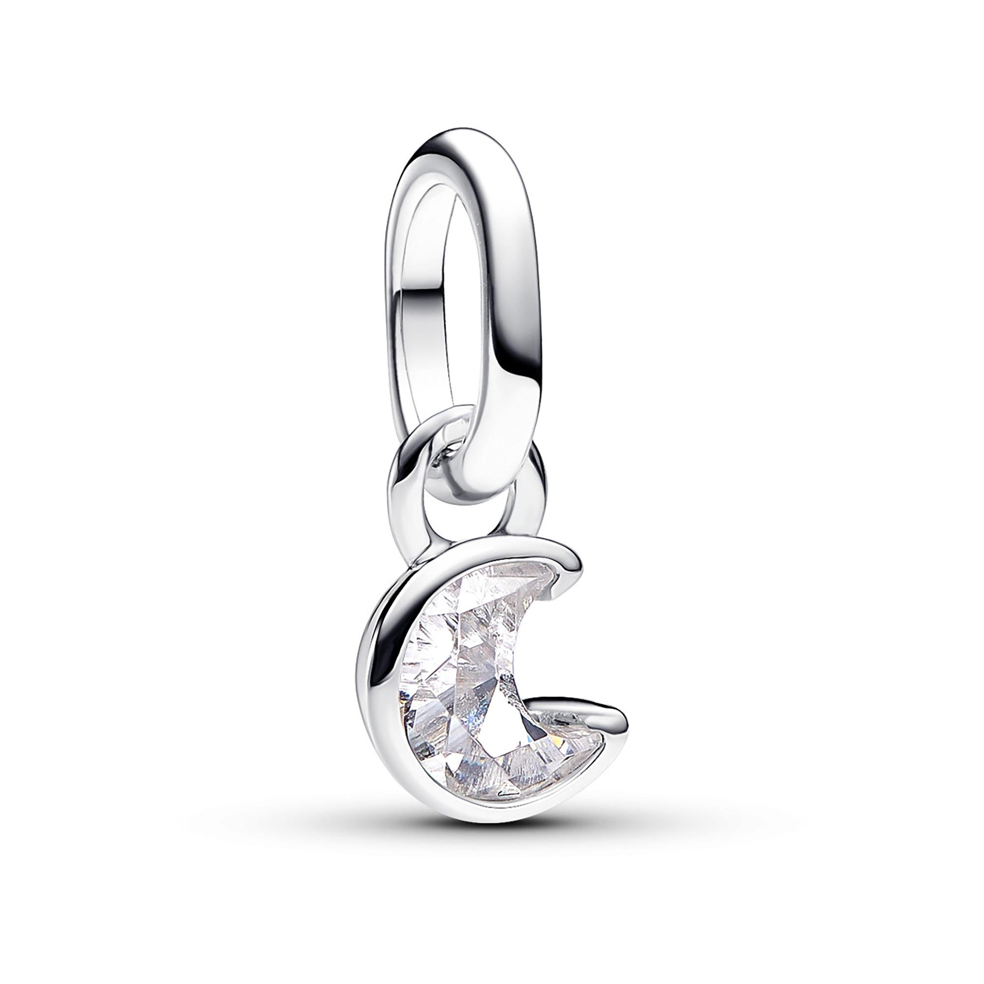 Scegli il Charm Mini Pendente Sparkling Moon Pandora ME. Una pietra scintillante a forma di luna si trova all'interno di una cornice in argento sterling , che presenta anche dettagli come un foro intagliato su un lato e un intaglio a forma di mezzaluna sull’altro lato. Il charm a forma di falce di luna, che rappresenta una delle fasi più sorprendenti e iconiche della luna, è un simbolo di femminilità ed entusiasmo.