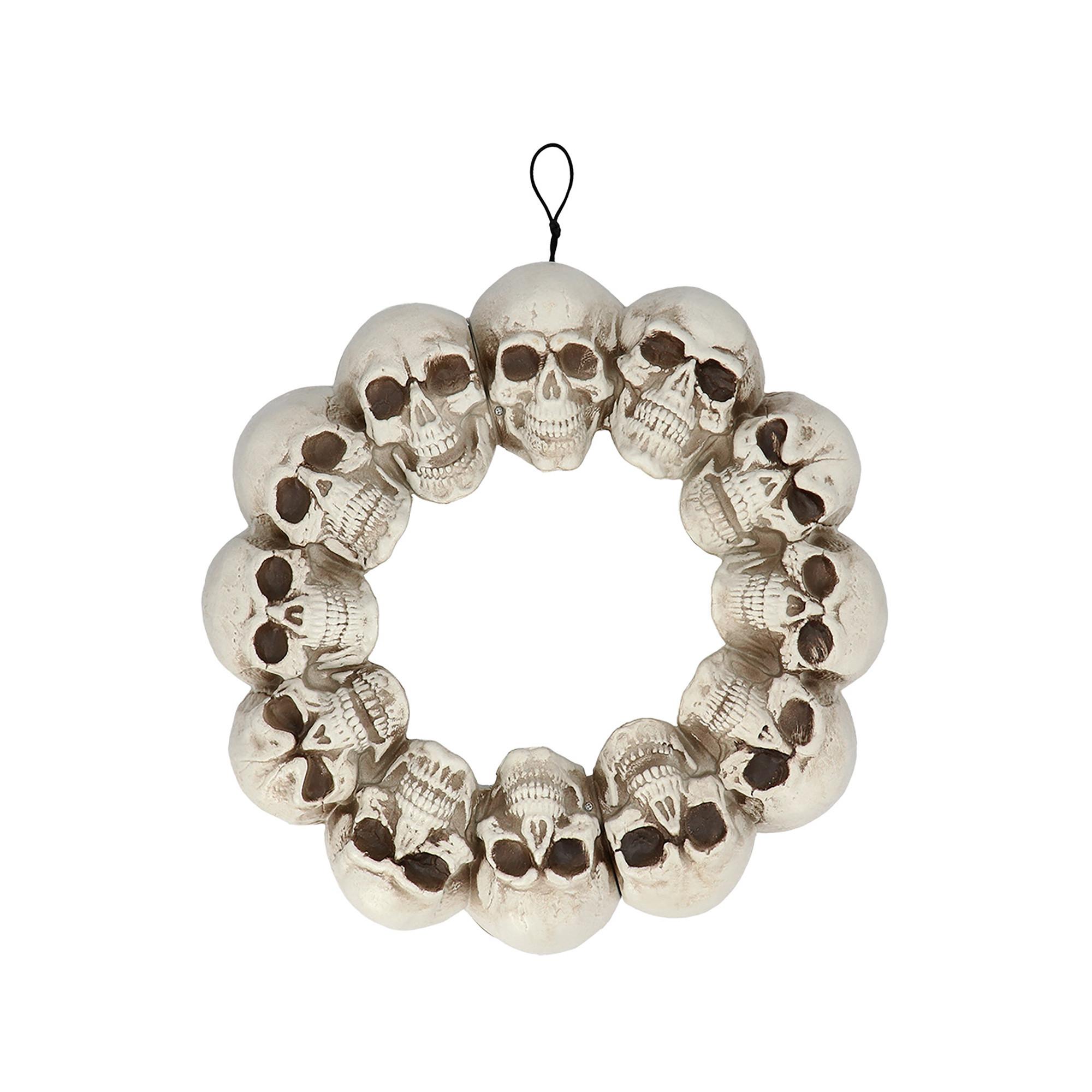 Una decorazione terrificante da appendere alla porta o sulla mensola del camino. Questa ghirlanda di teschi di Halloween è riccamente decorata con spaventosi teschi, che evocano un'atmosfera di mistero e malizia, perfetta per una casa infestata o per una festa spettrale.