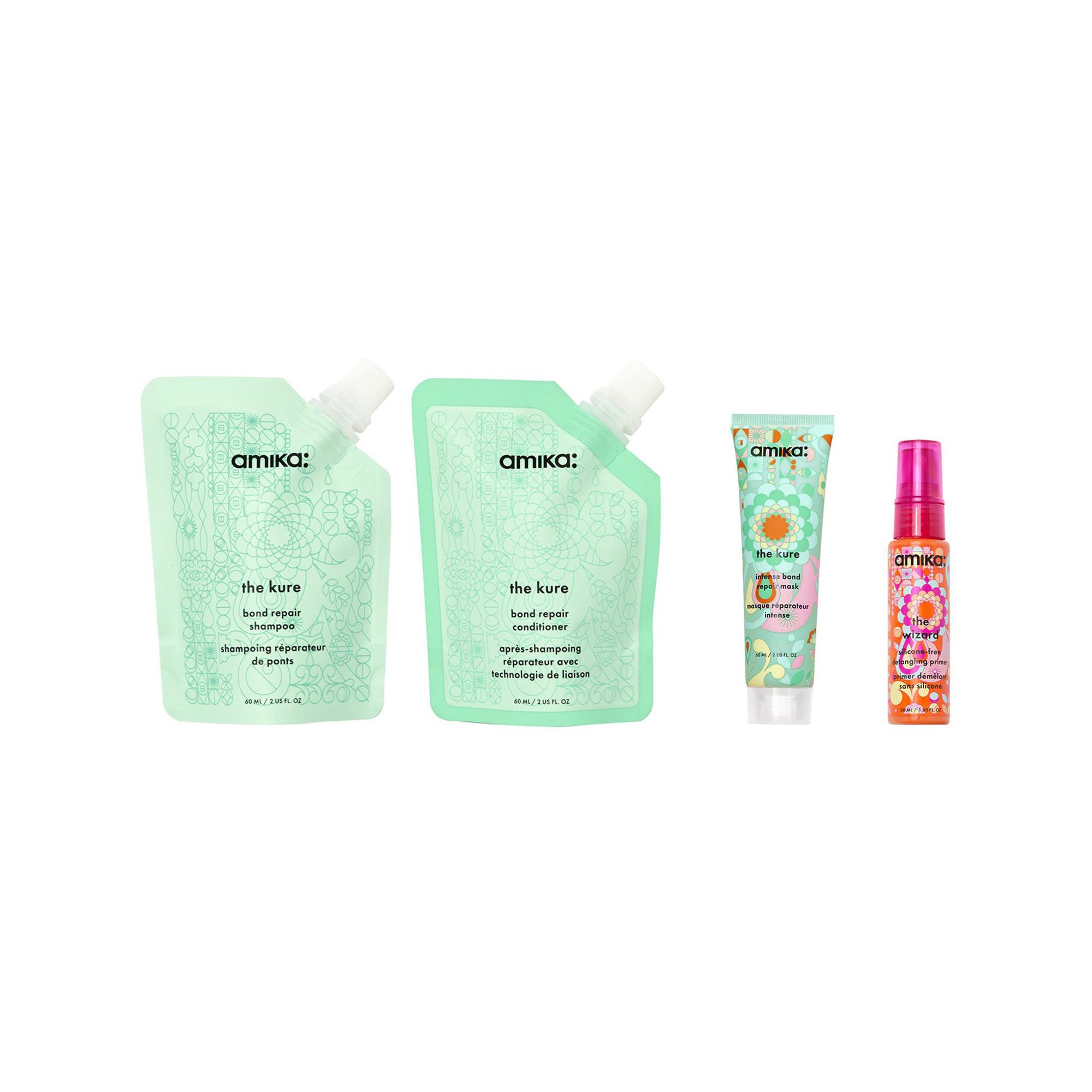 Che cos'è? Ripara i capelli con questo set scoperta. Scopri i benefici dello shampoo e del balsamo The Kure, della maschera di riparazione intensa e del primer senza silicone The Wizard.
