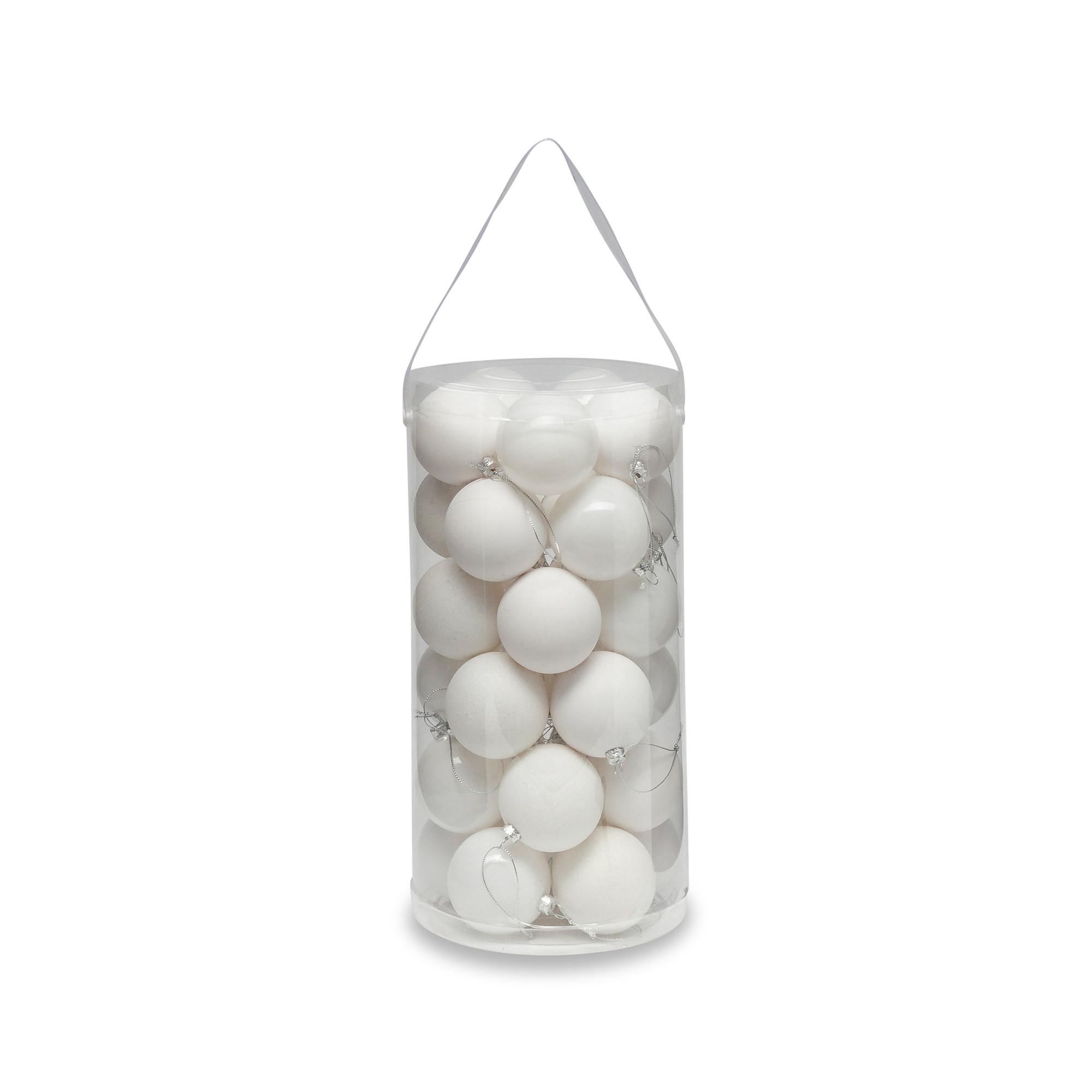 Questo set di palline di Natale firmato Manor contiene tre diversi tipi di palline in un design monocromatico. Le palline sono provviste di un passante da appendere e sono disponibili in diverse dimensioni. Gli ornamenti natalizi sono fatti di plastica.