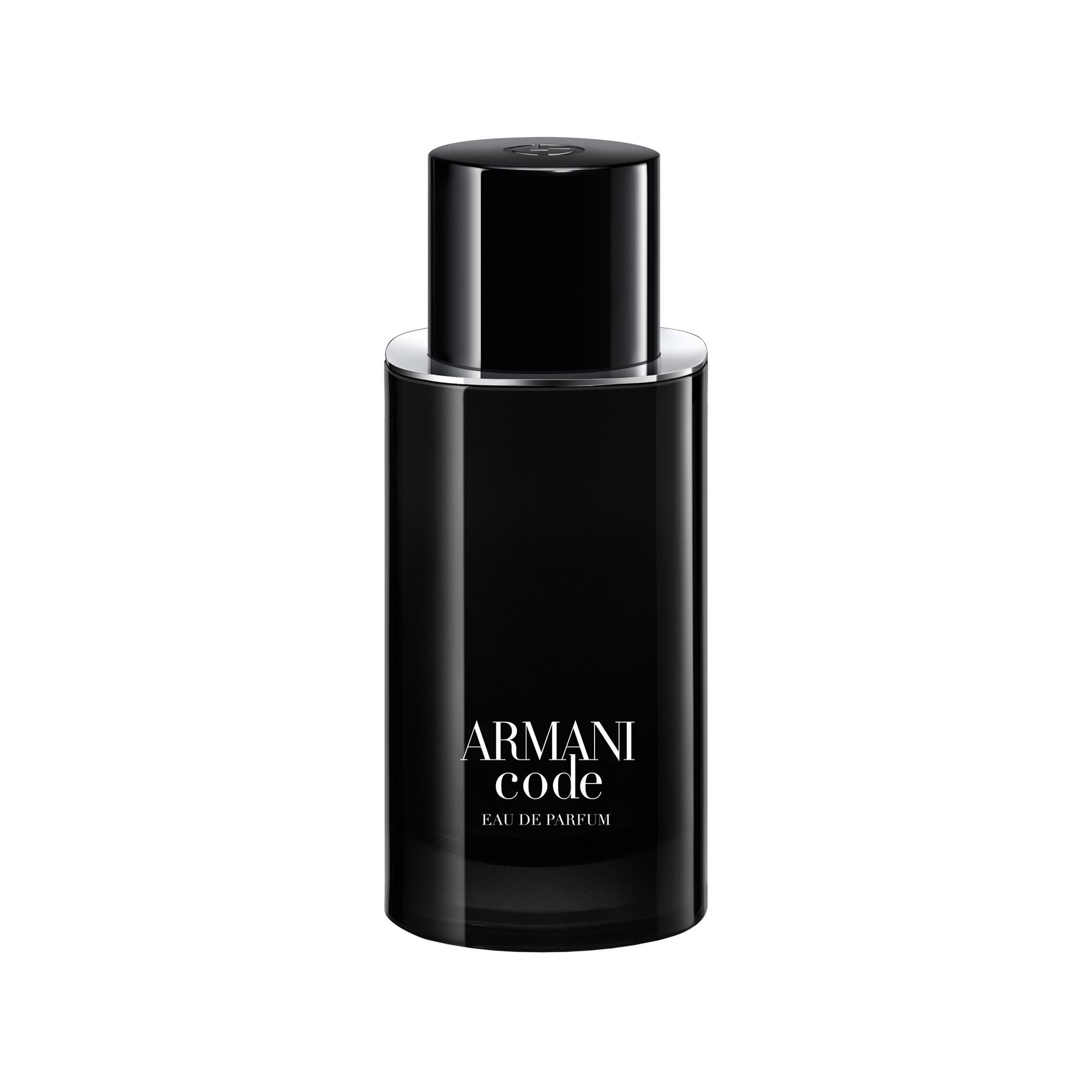 ARMANI CODE EAU DE PARFUM, Una nuova fragranza fougère ambrata e speziata che si apre con una freschezza sfaccettata con note di mandarino verde e si dispiega in un cuore speziato e legnoso di essenza di noce moscata. Una sensualità maschile è creata nel fondo della fragranza da una ricca e calda assoluta di fava tonka. Con il suo innovativo flacone ricaricabile dal design lussuoso, la sua composizione accattivante e il suo impegno consapevole per la sostenibilità, PEau de arfum riflette la mascolinità moderna.