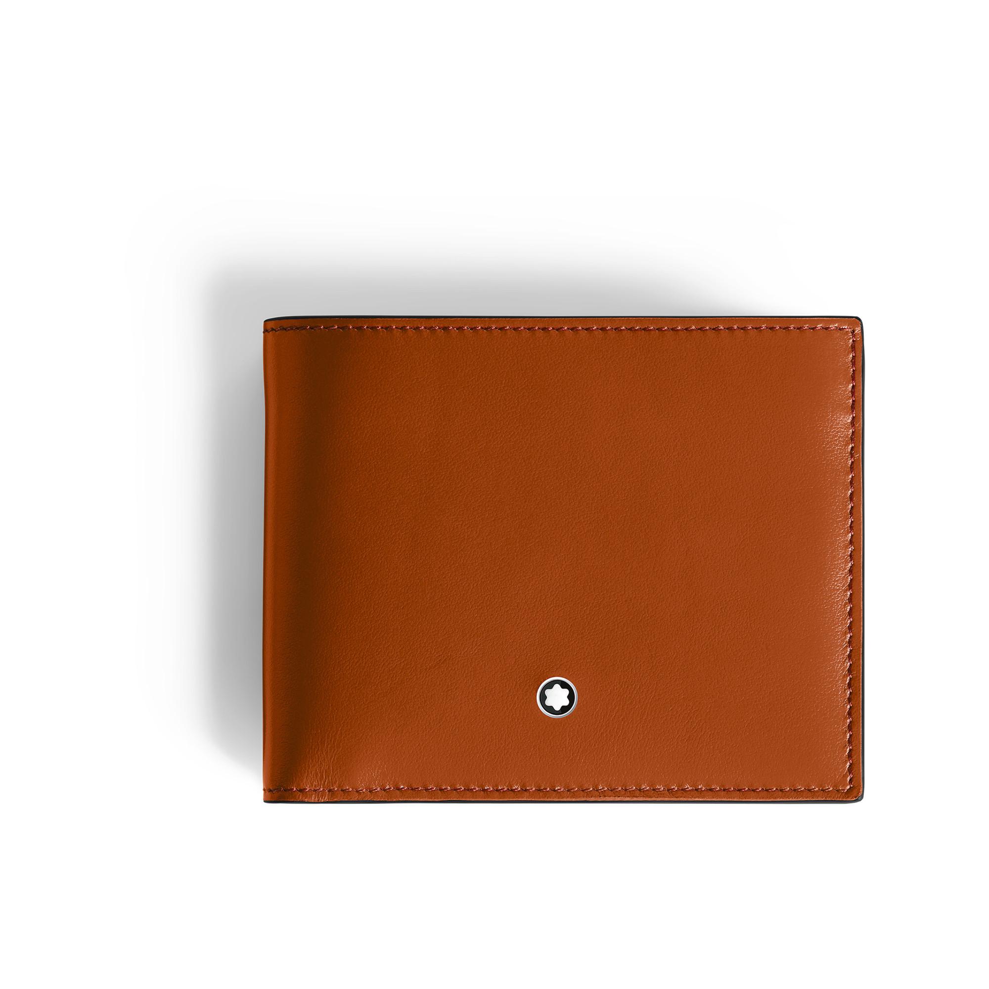 Elegante accessorio per tutti i giorni, il portafoglio Meisterstück in elegante pelle color ruggine contiene agevolmente sei carte di credito e dispone di ampio spazio con due scomparti per contanti e ricevute, oltre a due tasche aggiuntive.