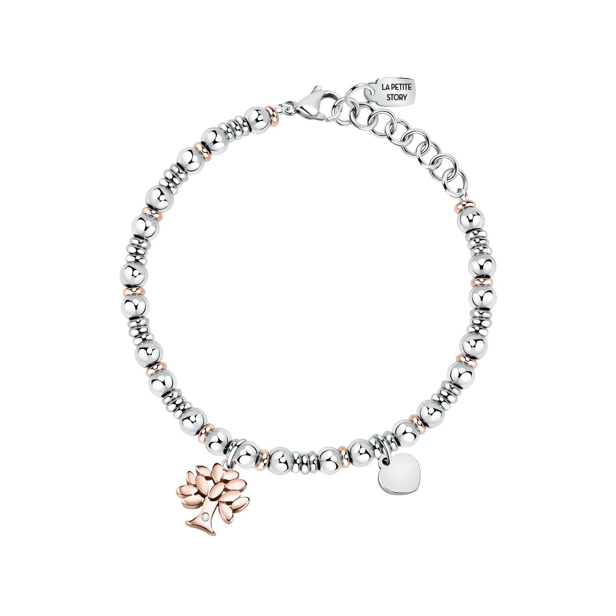 "Questo braccialetto della collezione ""Family"" firmata La Petite Story è un regalo amorevole per le donne. Ha due bellissimi simboli: l'albero della vita e un cuore ed è realizzato in acciaio di alta qualità, decorato con cristalli scintillanti. "
