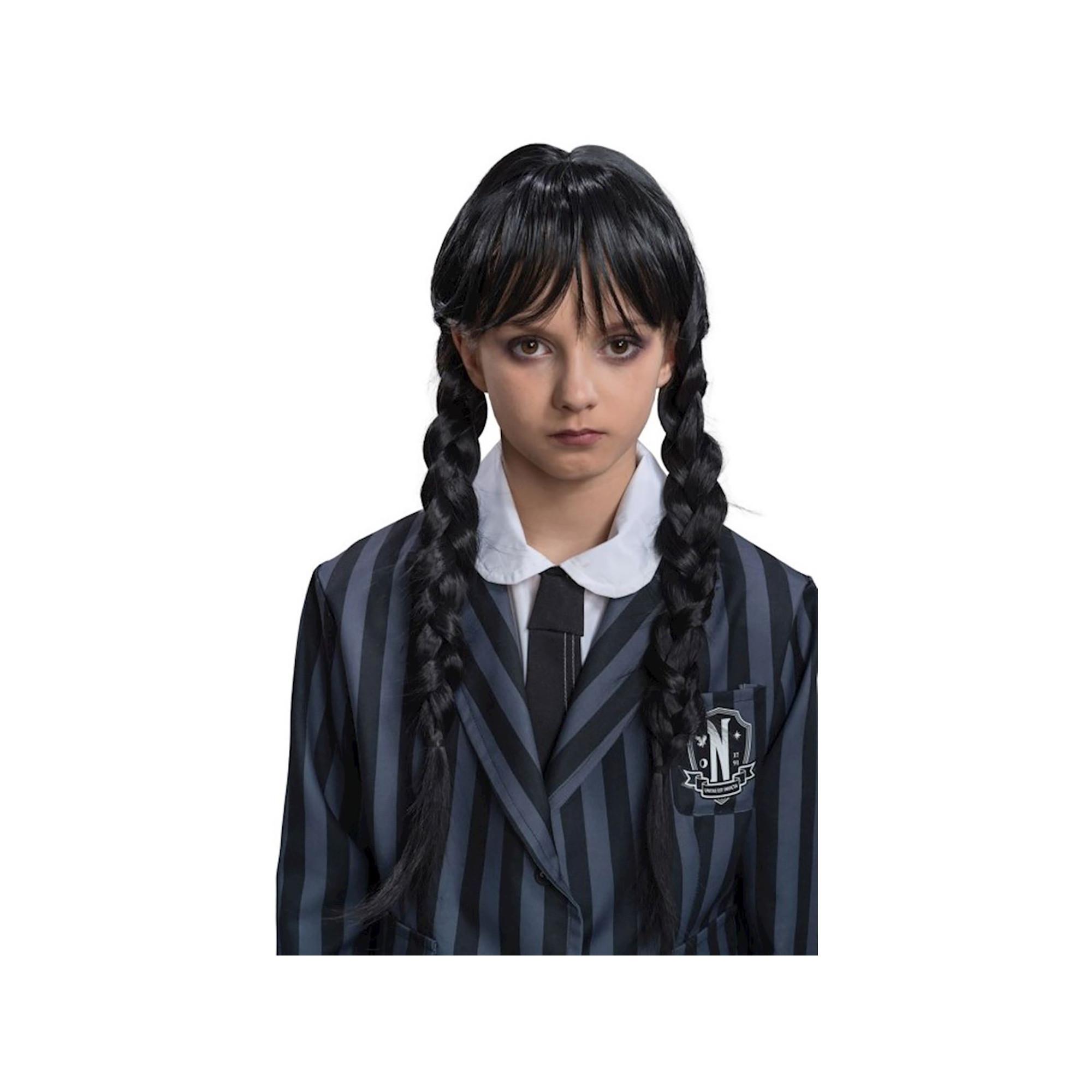 Il costume da figlia della Famiglia Addams non sarebbe completo senza la parrucca di Mercoledì con lunghe trecce. Con questo accessorio per il costume, sarete immediatamente riconosciuti come la tenebrosa Mercoledì.