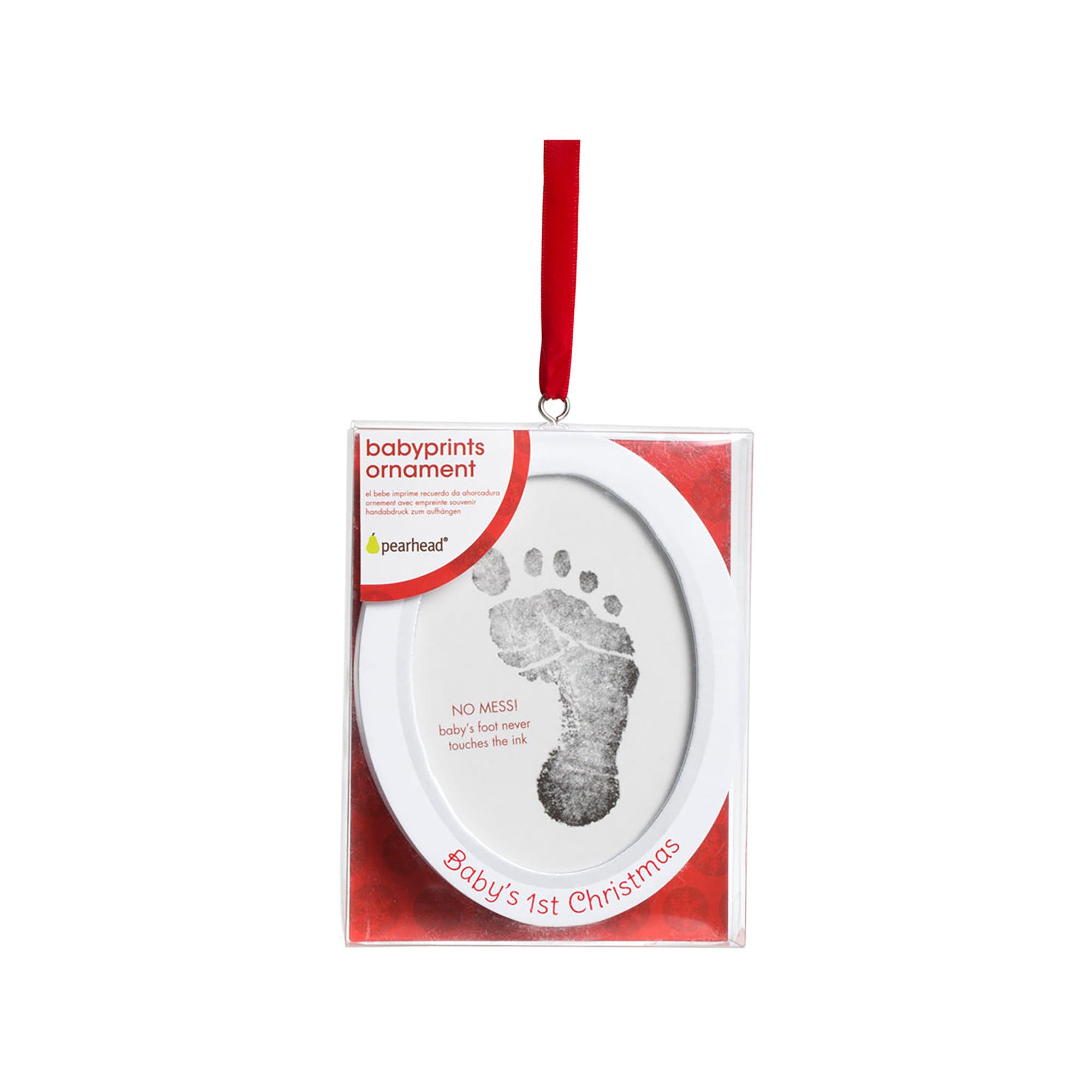 Goditi le impronte dei tuoi piccoli e le vacanze con l'ornamento fotografico per bambini firmato Pearhead Incluso cuscino per timbri, due biglietti per l'impronta perfetta e nastro per appendere la decorazione