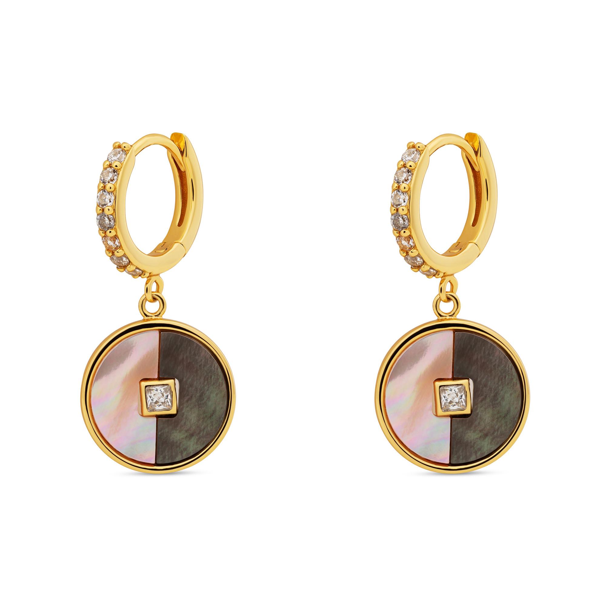Questi orecchini a cerchio firmati L'Atelier Sterling Silver 925 con dischi pendenti in madreperla e zirconi sfaccettati si chiudono con stile grazie alla chiusura ad anello.